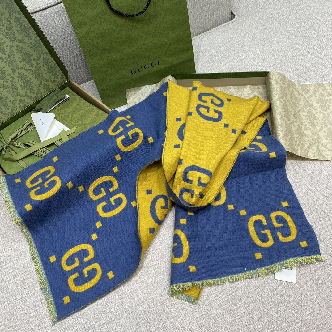 구찌 ZP 1:1 커스텀 울 머플러의 오버사이즈 디자인 GG 패턴이 새로운 방식으로 패션의 최전선에 복귀 소재: 울 91%, 실크 9% size: 190x35cm