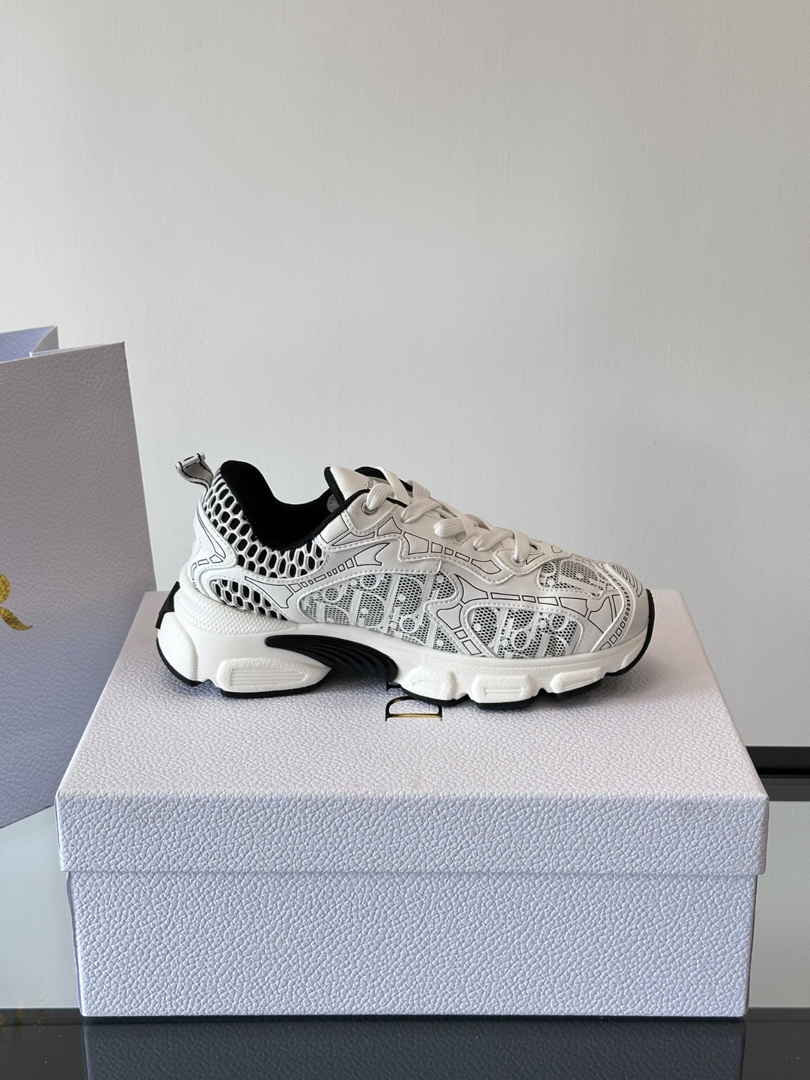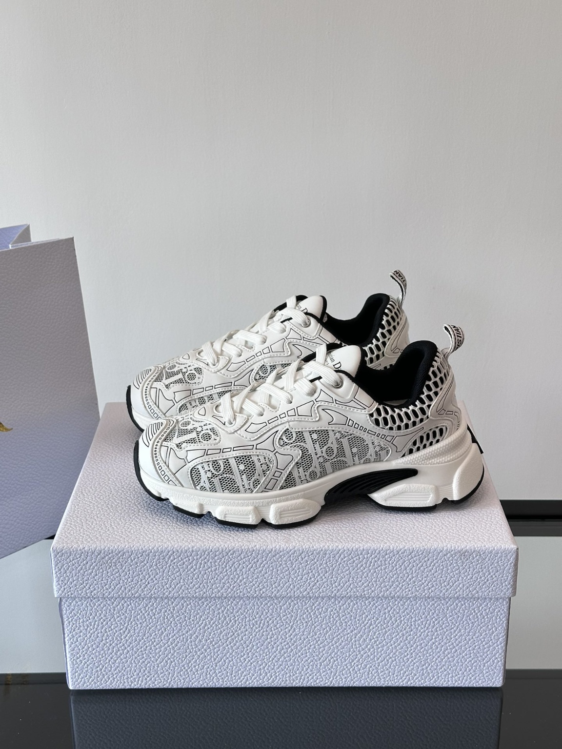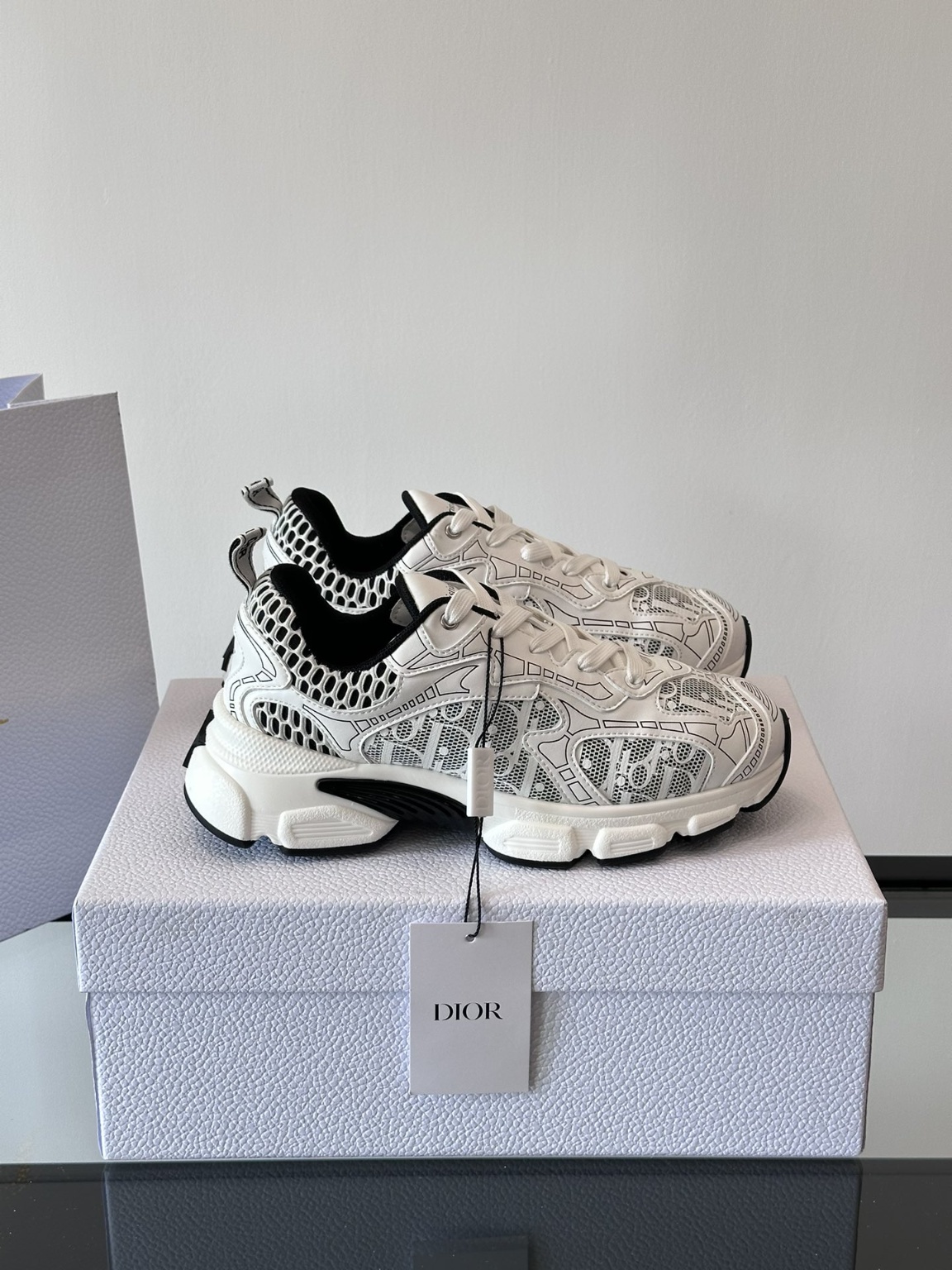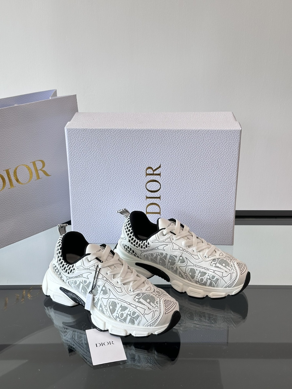 디올 커플 크로노 스니커즈 디올의 하이컷 스타일로 런닝화를 재해석한 스니커즈 메쉬에 가죽 효과의 패치, 양쪽의 CD 로고 별 패치, 굽의 로고 등 클래식한 디테일이 돋보이는 아이템 투톤 코튼 스트랩에 부드럽고 가벼운 텍스쳐의 EVA 밑창을 매치 Christian Dior의 행운의 별 심볼을 장식하여 사계절 내내 캐주얼하게 연출할 수 있는 풀 패키지