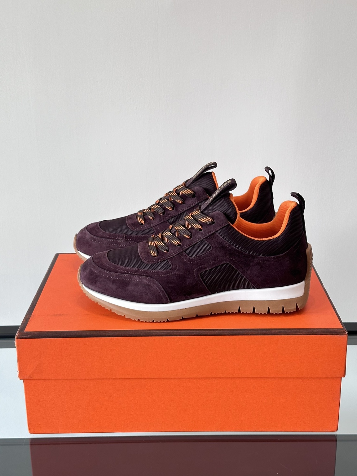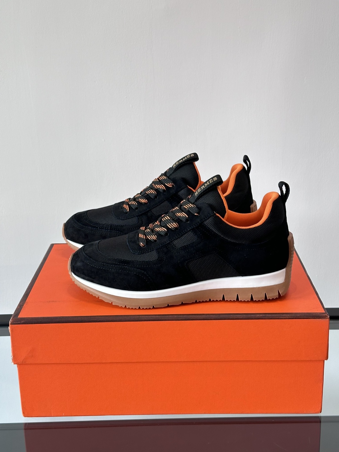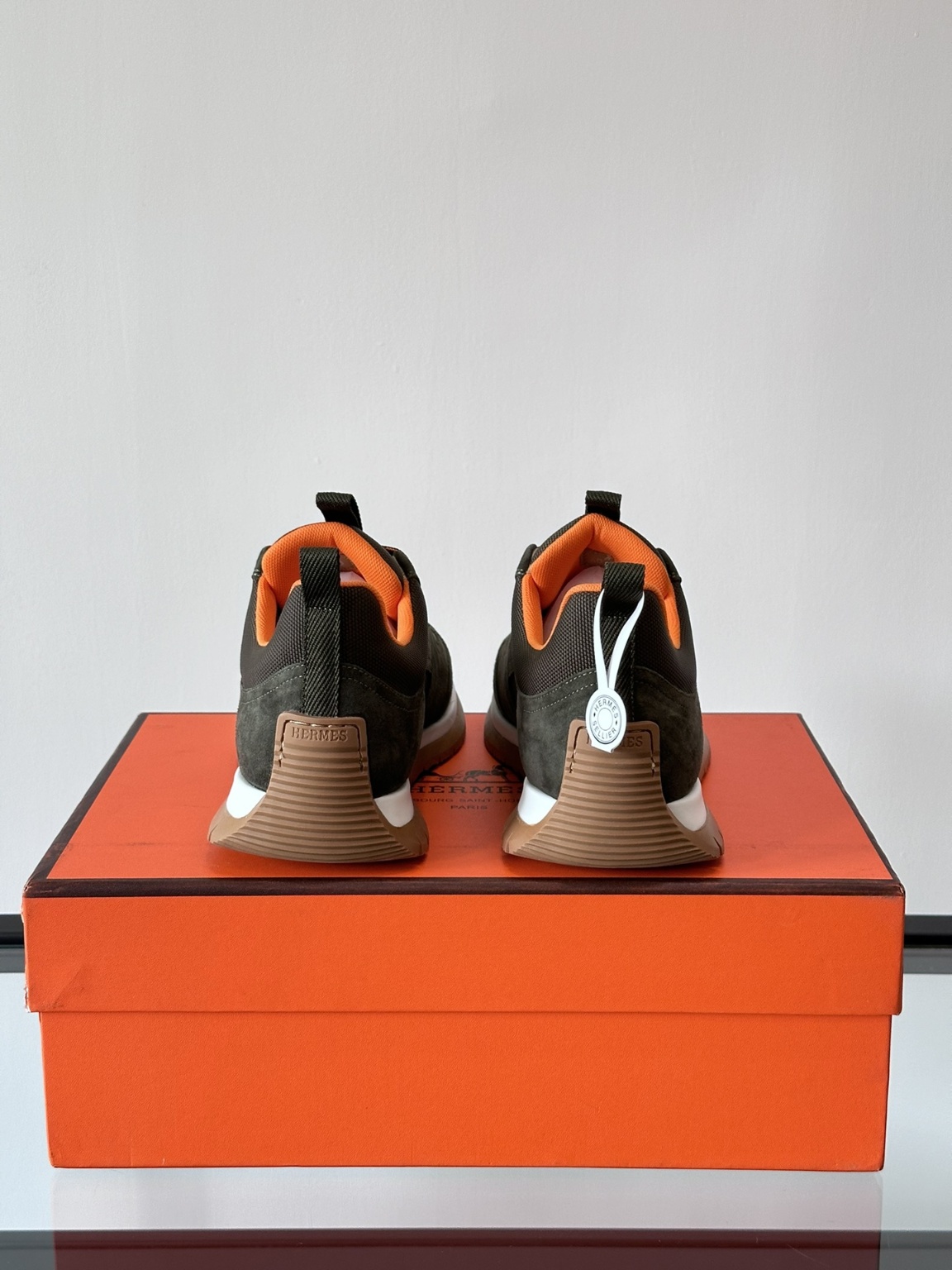 에르메스 스니커즈 앞면 송아지 가죽과 메쉬 패브릭으로 제작되었으며 수입 소재로 질감이 좋고 가벼운 바닥 장식 컬러 패턴이 있어 스타일리쉬한 룩을 연출해 줌