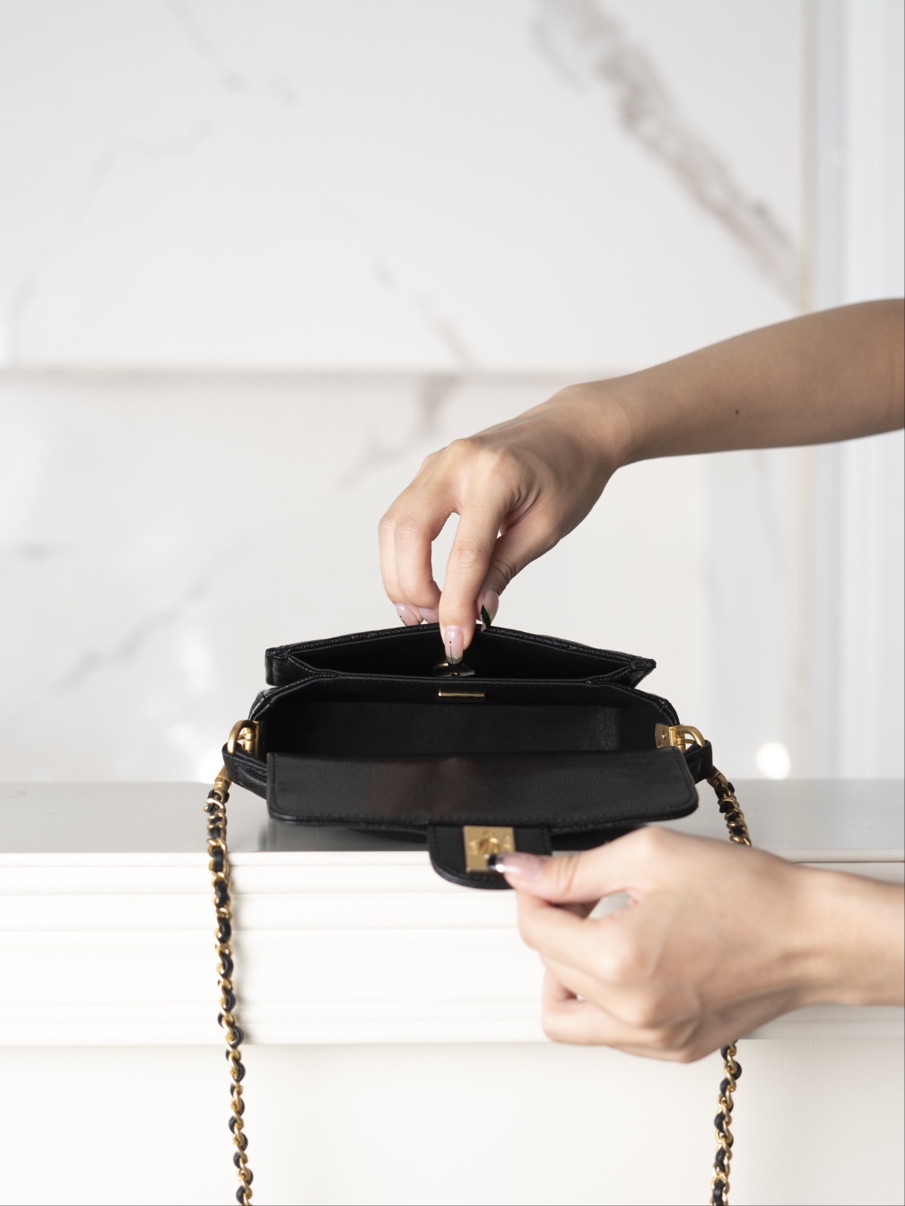 샤넬 24K 핸들 장식의 미니 플랩 백 클래식의 요소를 기반으로 최신 디자인과 결합하여 지속적으로 탐색하여 완벽을 추구하며 HAAS사 알갱이 엠보 캐비어 1급 송아지 가죽으로 가죽 표면의 투톤감이 우수하고 광택이 부드럽고 투명함 순동 소재 24K 리얼 금도금 사이즈: 11*16*4cm