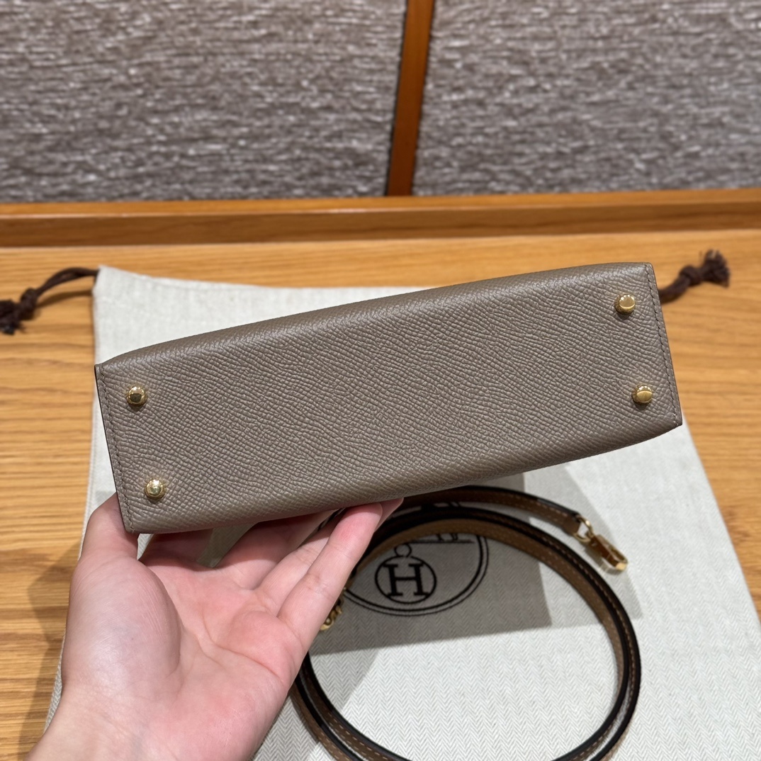 Style:mini kelly 2 Colour:18/Etoupe /3G/Alezan/4B/Biscuit Size:19*12*5.5cm Leather:Epsom From France Hardware:gold 미니 켈리 2세대, 코끼리 그레이+밤색 띠+쿠키색 손목 스트랩 골드 버튼, 프랑스 수입 장문 소가죽 고급스러운 풀 핸드메이드 맞춤 제작 핸드메이드 못, 핸드메이드 금속, 18k 금속 도금 주문 실사
