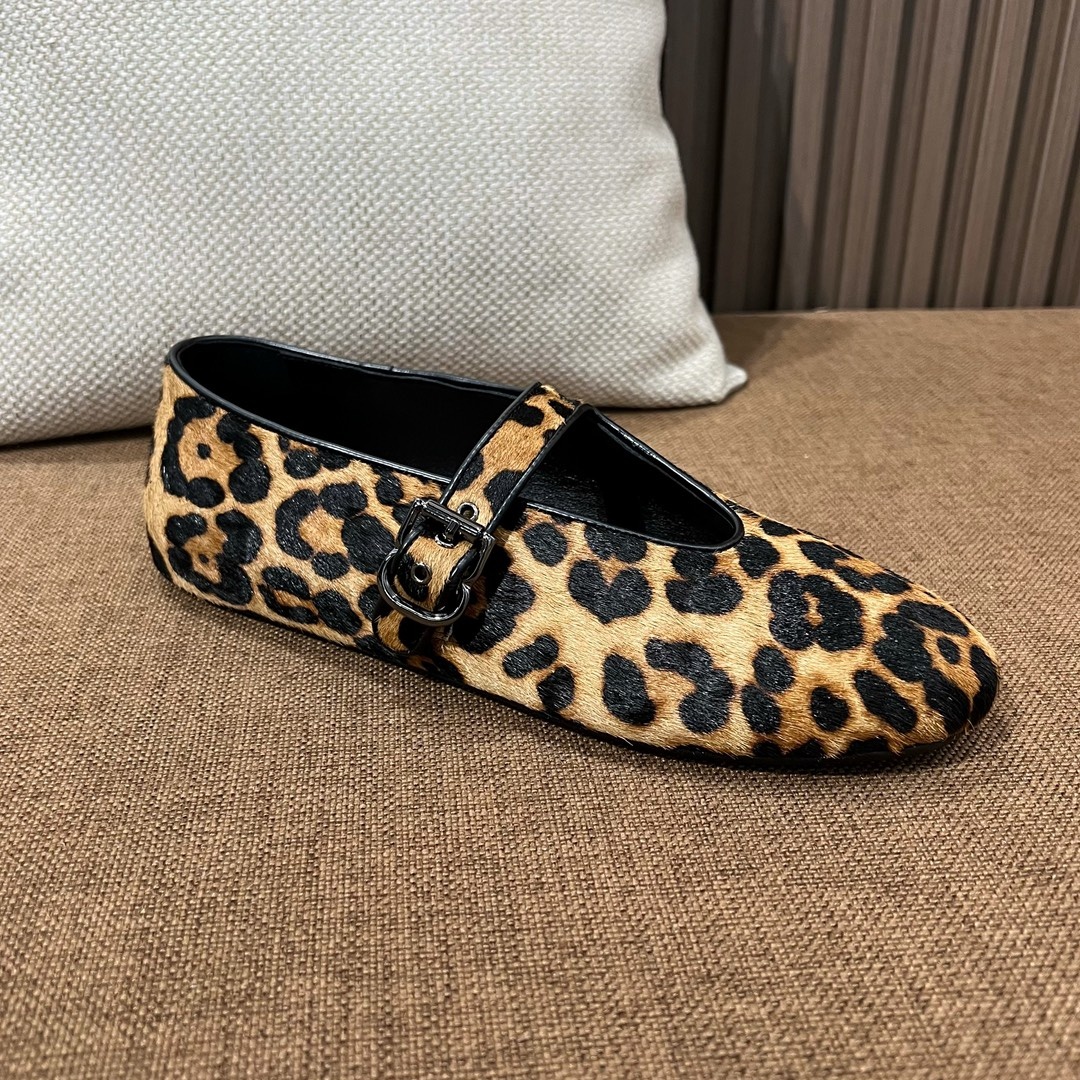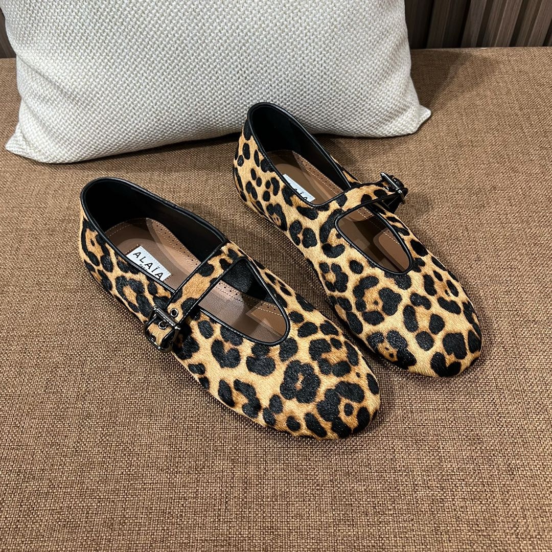 Alaia 24 신상품 일자 펀칭 메쉬 발레 슈즈 심플하고 모던할 뿐만 아니라 어디에나 잘 어울림 여자 신발장 필수 아이템 창은 수입산 호피무늬 퍼로 제작되었음 ZP 맞춤 풀바디 면 양가죽 안감으로 편안한 통기성 커스텀 TPU 바닥으로 미끄럼과 마모에 강함