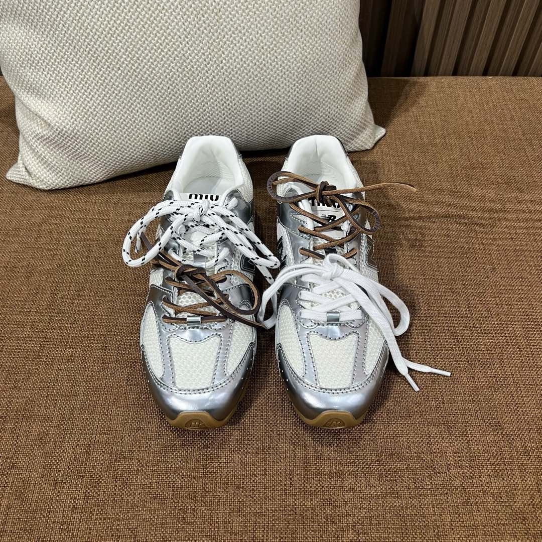 MIUMIU X New Balance 530 런닝화 신발 앞면은 수입 미러 실버 소가죽으로 질감이 뛰어남 맞춤형 에어메쉬 패치워크 양가죽 안감으로 편안한 통기성 커스텀 고무창으로 미끄럼 방지 및 마모 방지 클래식한 스타일링을 놓치지 마세요