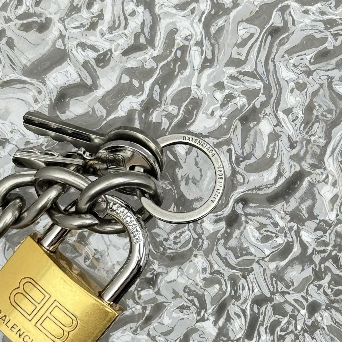 발렌시아가 2024SS 키링 굵은 체인 목걸이 시크한 패셔니스타 필수 아이템 볼드한 디자인에 자물쇠와 열쇠로 스타일링 데일리 쇼핑 트렌디 필수 아이템 사이즈: 길이46.5cm