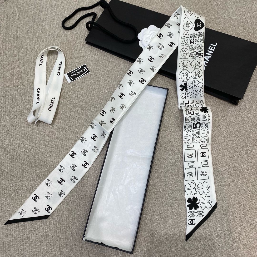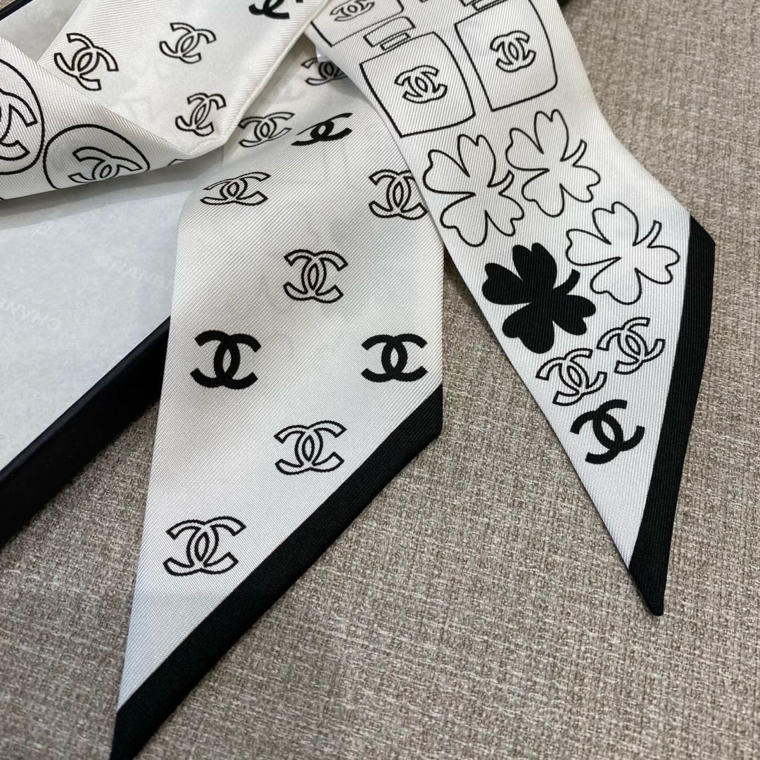 샤넬 리버서블 쁘띠 스카프 한눈에 반한 쁘띠 스카프 다용도 Twilly 헤어밴드, 데일리룩, 가방끈에 포인트로 활용 가능 정교한 공예품, C알파벳 프린트의 질감 넘침 소재: 실크 100% size: 120x6cm