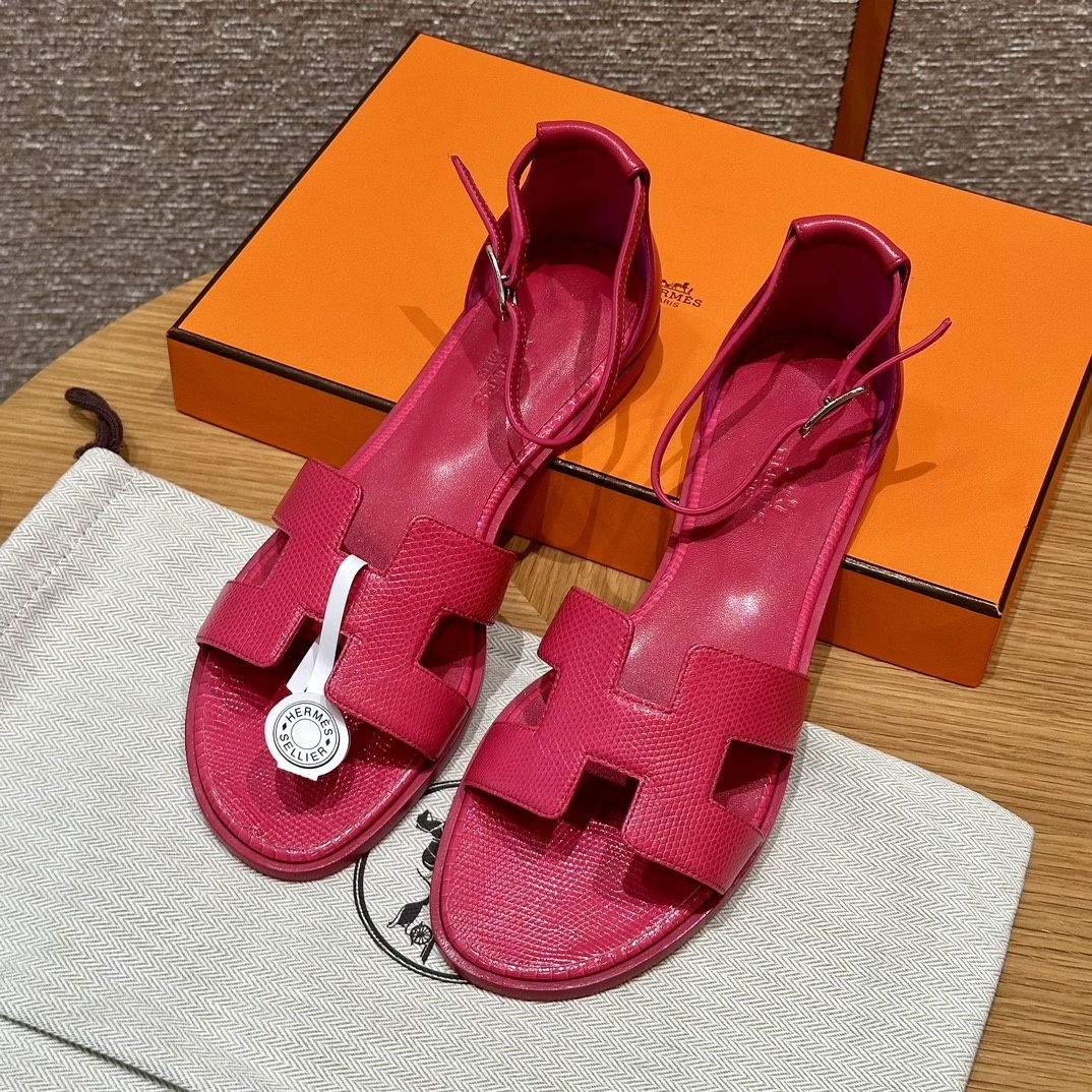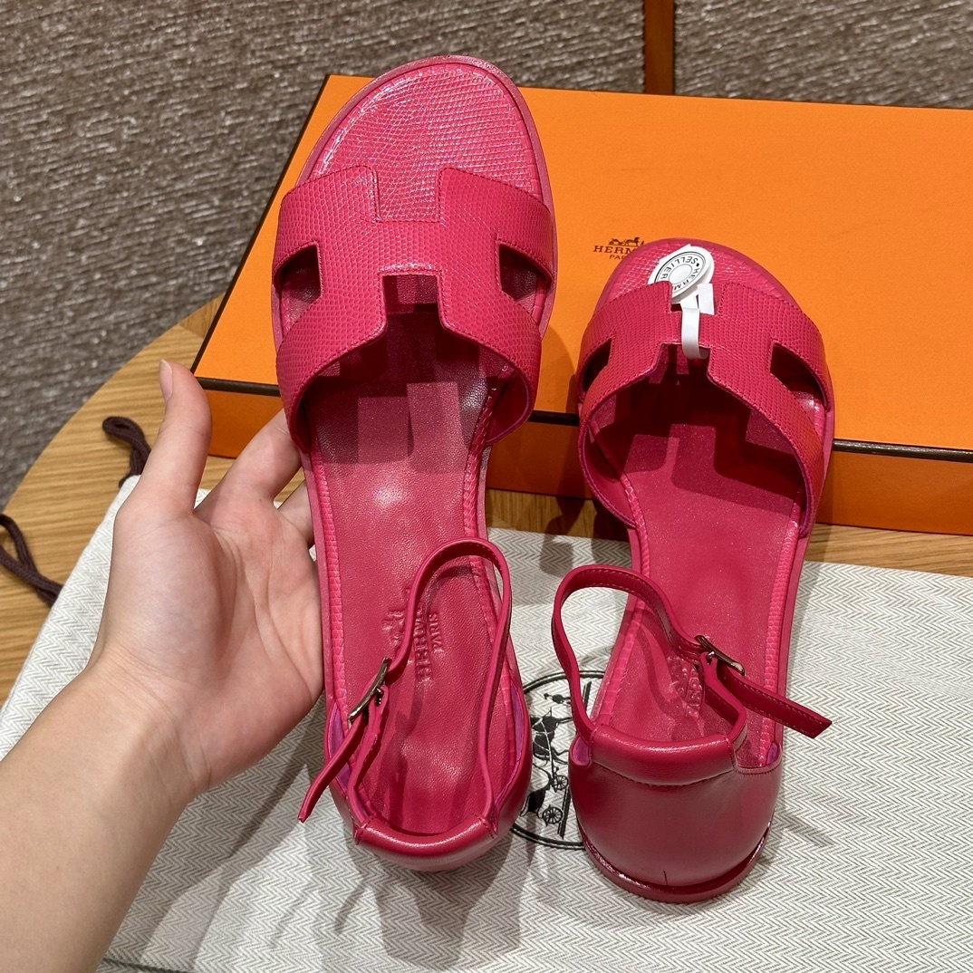 스타일: 산토리니 샌들 50 색상/colour: 로즈레드/Rose red 겉감/Upper material: 도마뱀/리자드 바닥재/Bottom materials: 진피대창/Dermal outsole 반사이즈 맞춤 제작 가능 이 상품은 주문 제작 희귀 가죽으로 교환불가 저희 매장 제품은 모두 수작업으로 제작