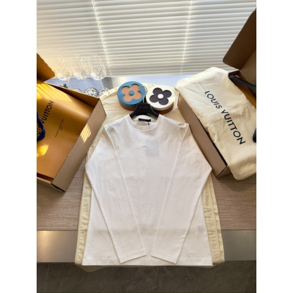 루이비통 24 스키 컬렉션 3D입체 엠보싱 로고 긴팔 티셔츠 전판 ZP 6800 구매 분해 제작, 긴 면 저지 원단 맞춤 제작 100% 순면 원단 제작, 촉감 복원 ZP 일치 앞판 LV 입체 로고 디자인, 뒷판 맞춤 로고 안티맥 맞춤 골지 넥라인 진정한 1:1