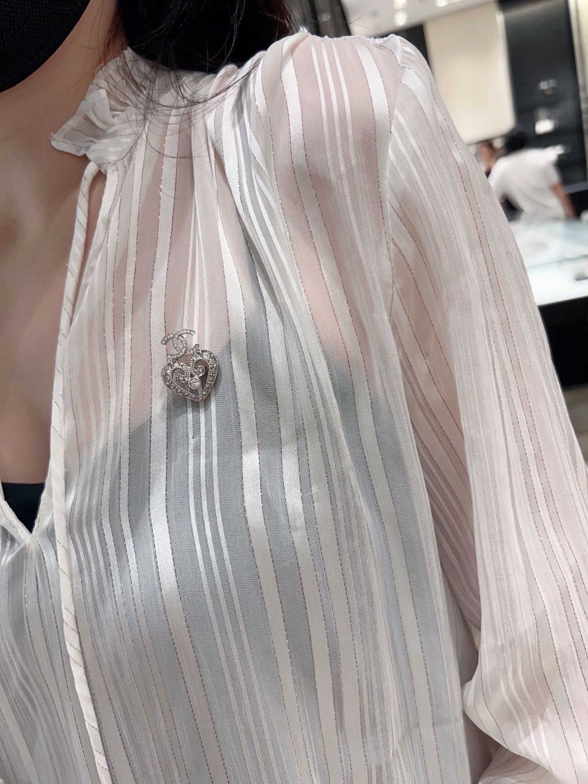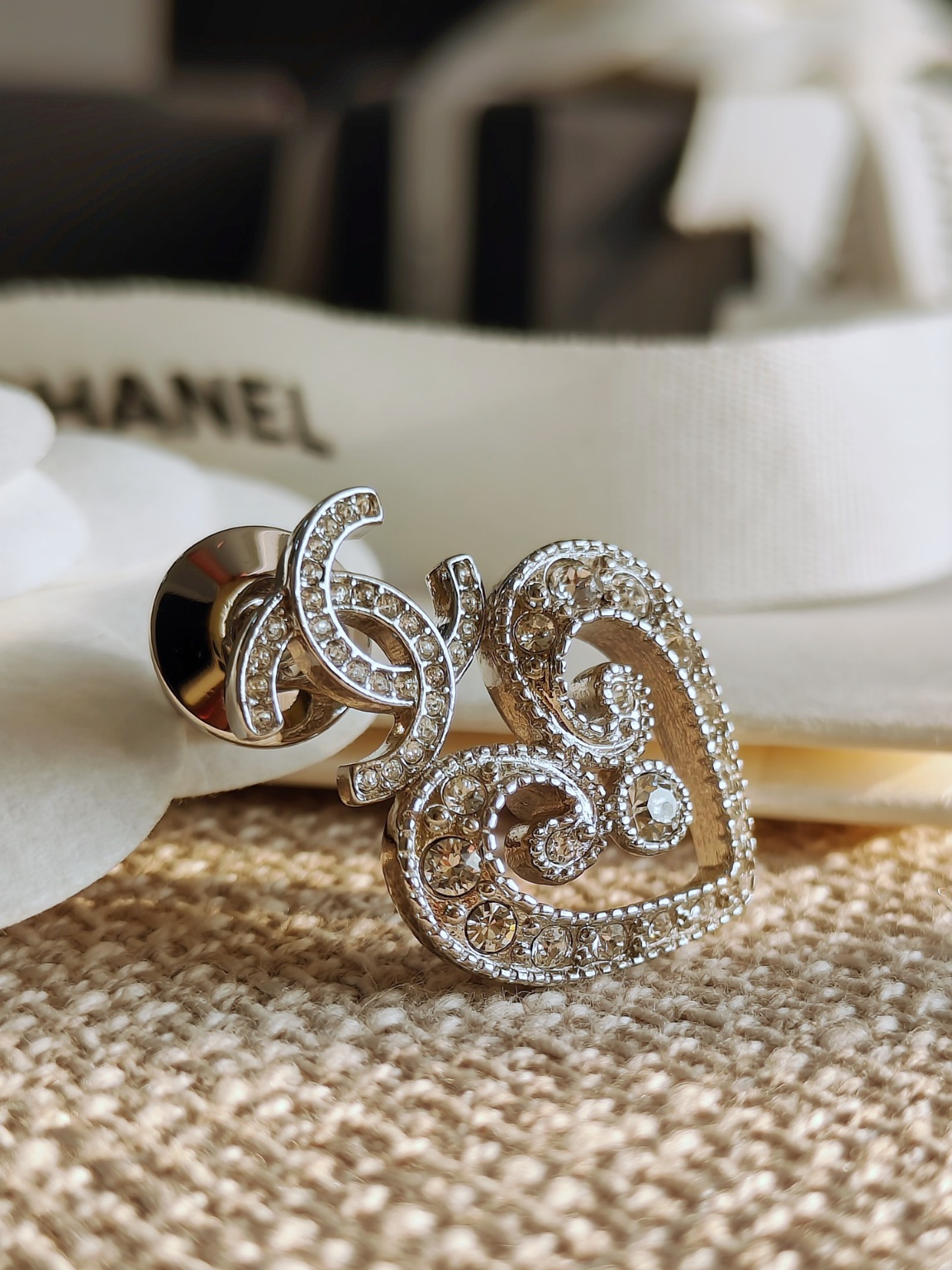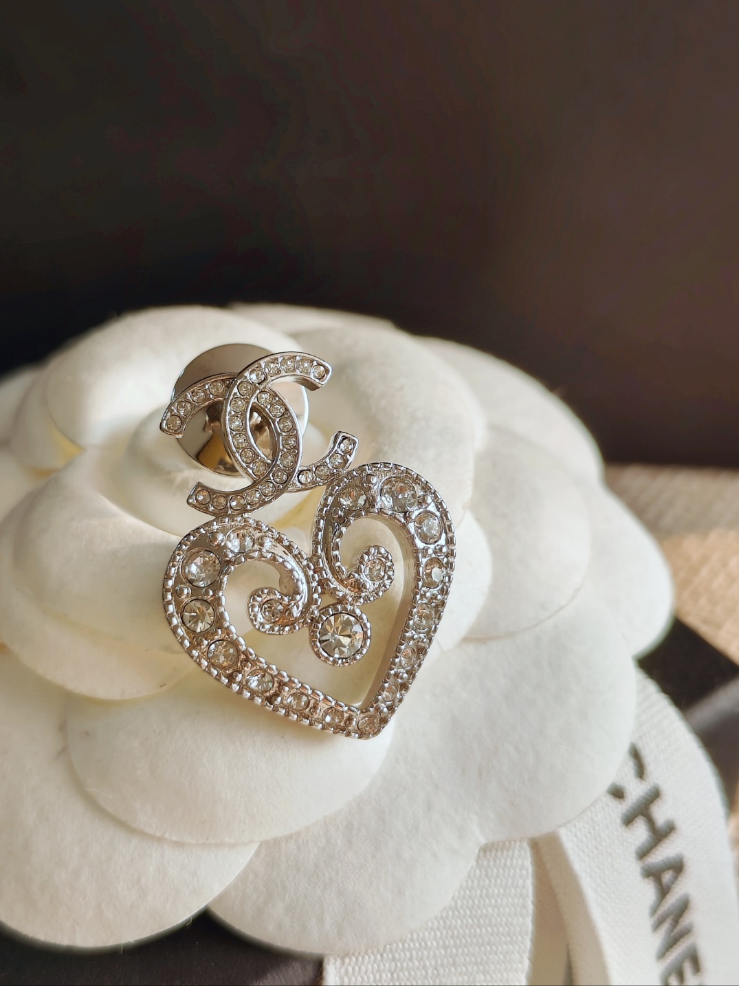 샤넬 23k 실버 더블 C 펀칭 하트 브로치 전 세계 최초 출시, 가을과 겨울의 베스트셀러 시리즈 컬러풀 라인이 바로크 스타일과 비슷하고 우아하고 대범함 금속은 완벽하게 섬세하게 처리되어 정교하게 제작 ZP5100, 유일하게 진짜 구매해서 개발 ZP 일치 신주 소재, 수입 스와로브 큐빅 브로치 폭 약 21CM, 높이 약 2.7CM