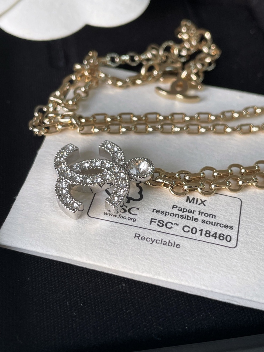 샤넬 싱글 다이아몬드 더블 C 골드 체인 목걸이 클래식하고 심플한 디자인 상큼한 실버와 화이트 큐빅이 정말 잘 어울려요 특별히 제작된 타원에 스퀘어 콤비 체인 체인은 라이트 골드 컬러에 실버 펜던트 액세서리류의 공예는 지금 우리에게 있어서 99.99% 완벽하게 할 수 있음 ZP4600, 유일하게 진짜 모델로 ZP를 구매하여 개발 ZP 일치 신주 소재, 스와로브스키 크리스털 스톤 사이즈 착용 효과 참고