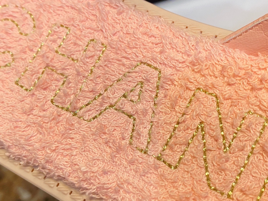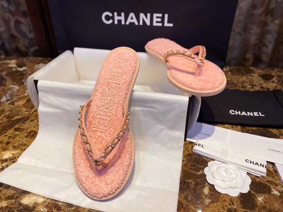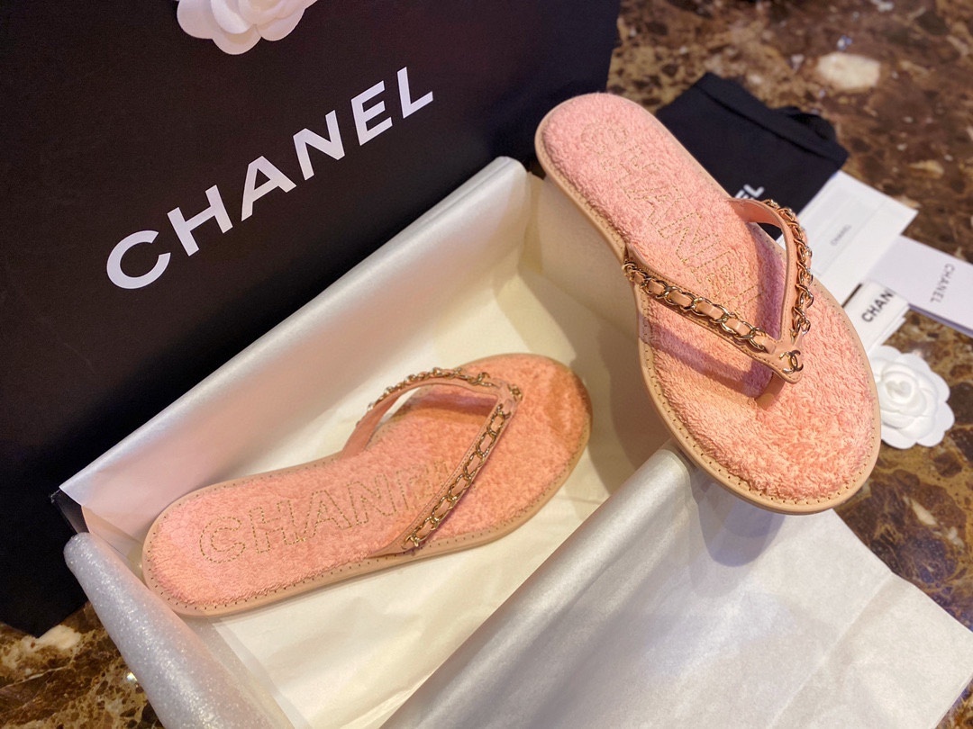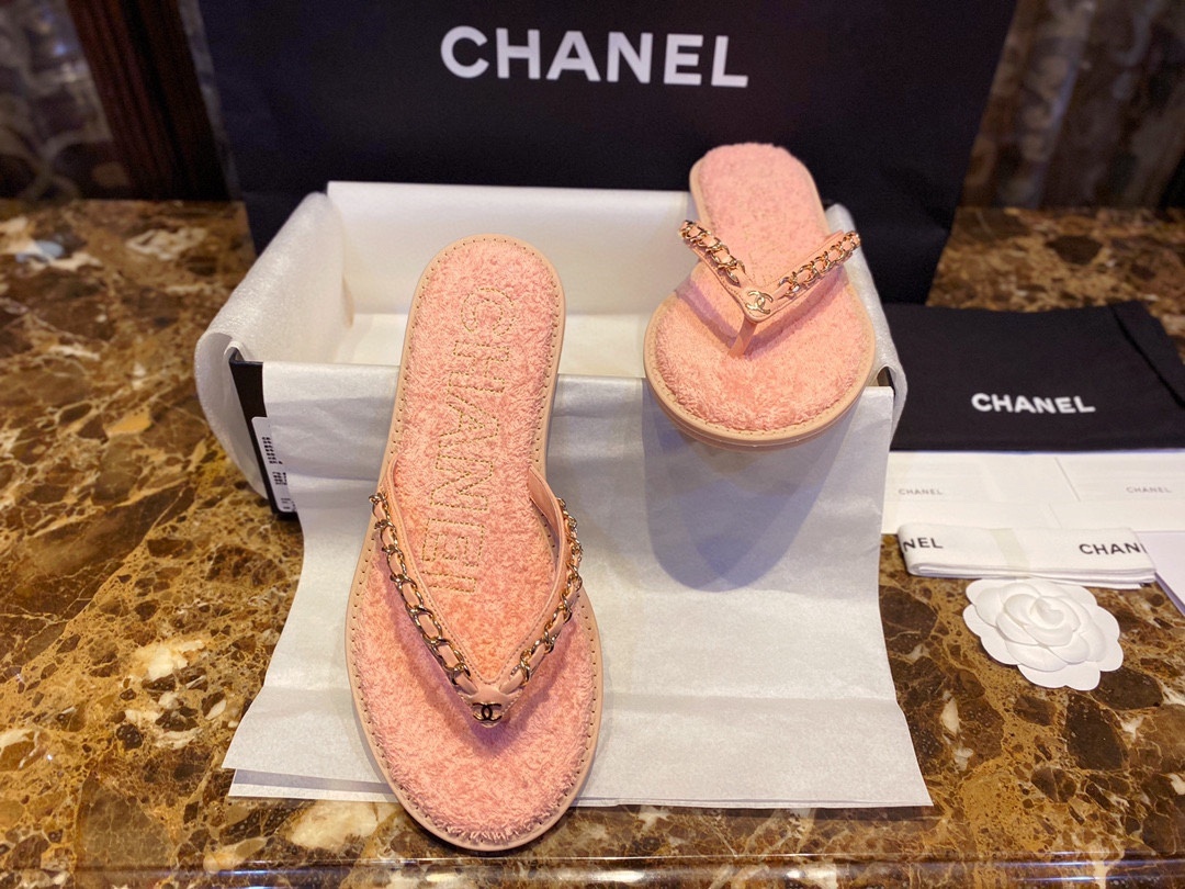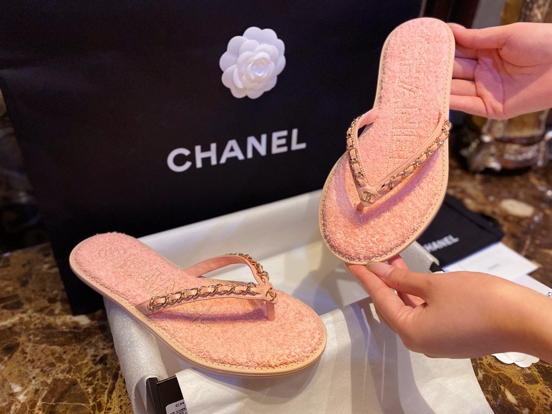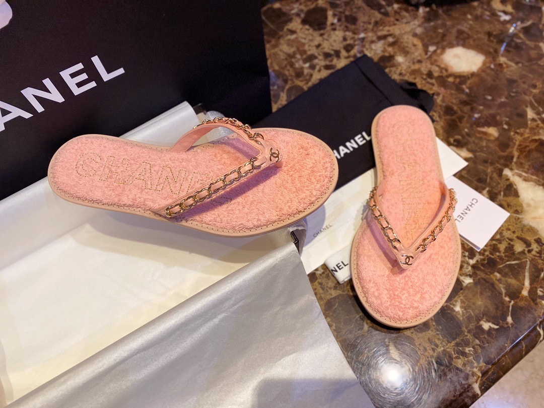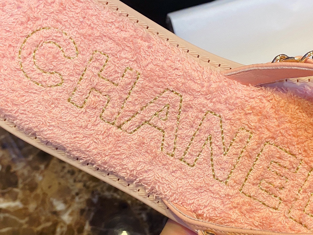 샤넬 체인 조리 슬리퍼 핑크 여름 필수 아이템 울트라 컴포트 퍼 밑창+골드 로고 자수 묵직한 무게의 골드 체인 모두 진공 도금 두께 18k 골드 오리지널 원단과 같음 조금도 소홀하지 않고 섬세한 디테일
