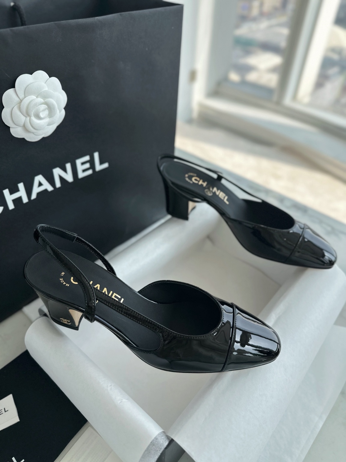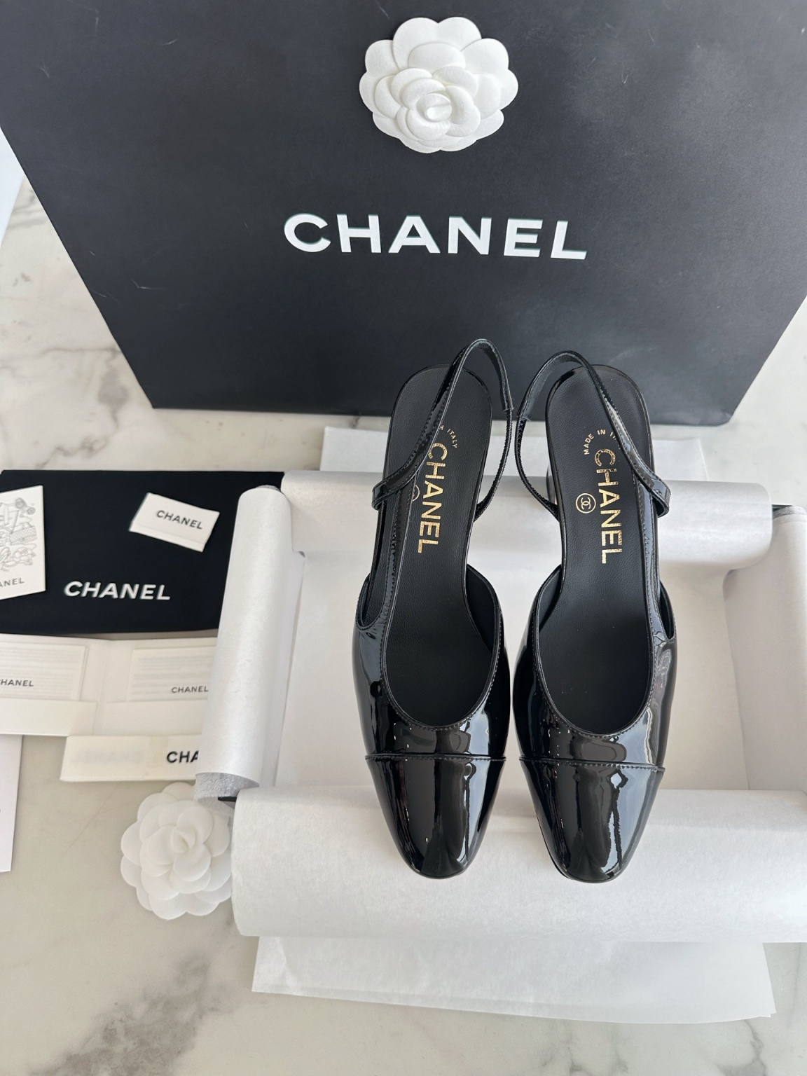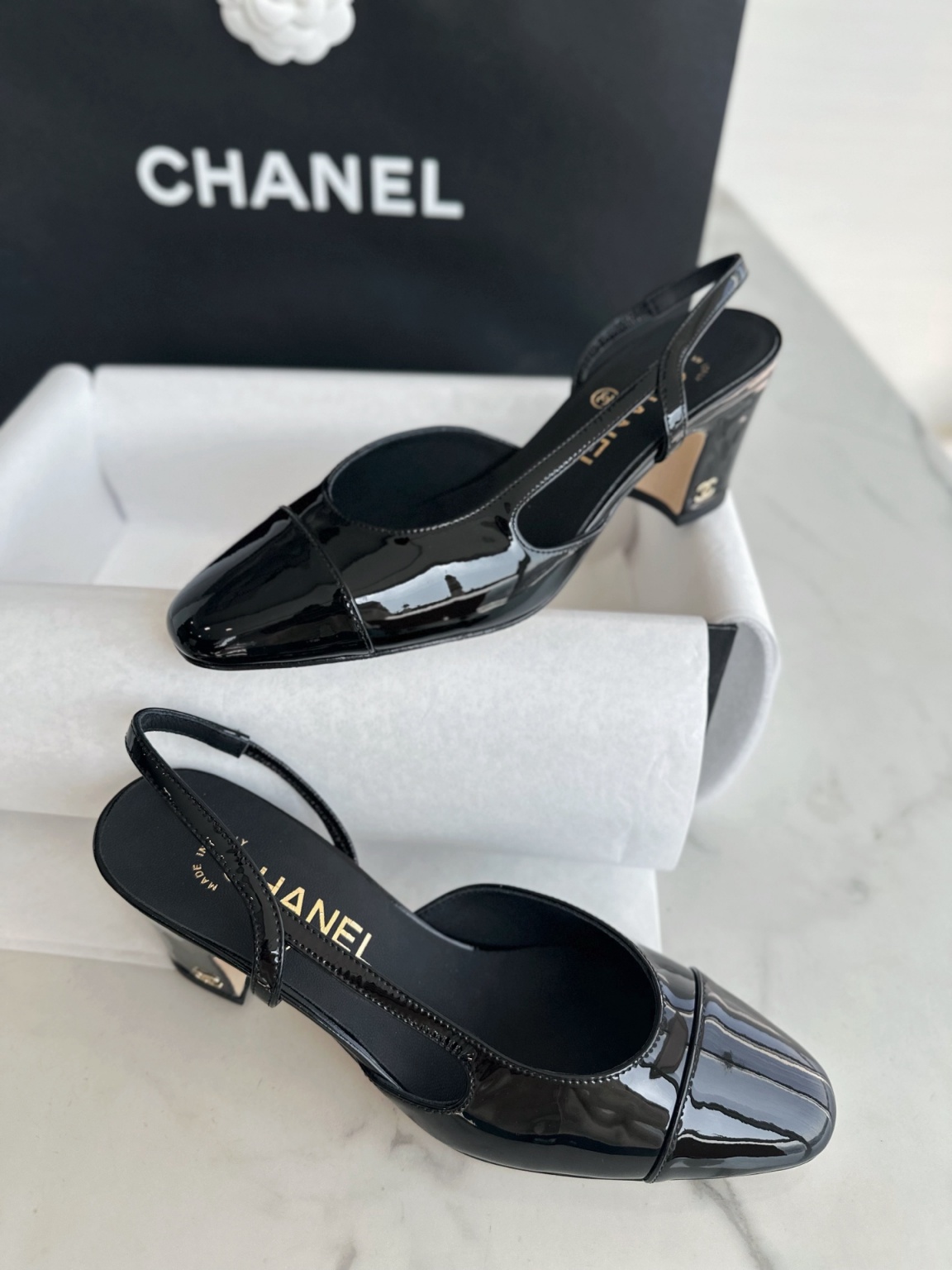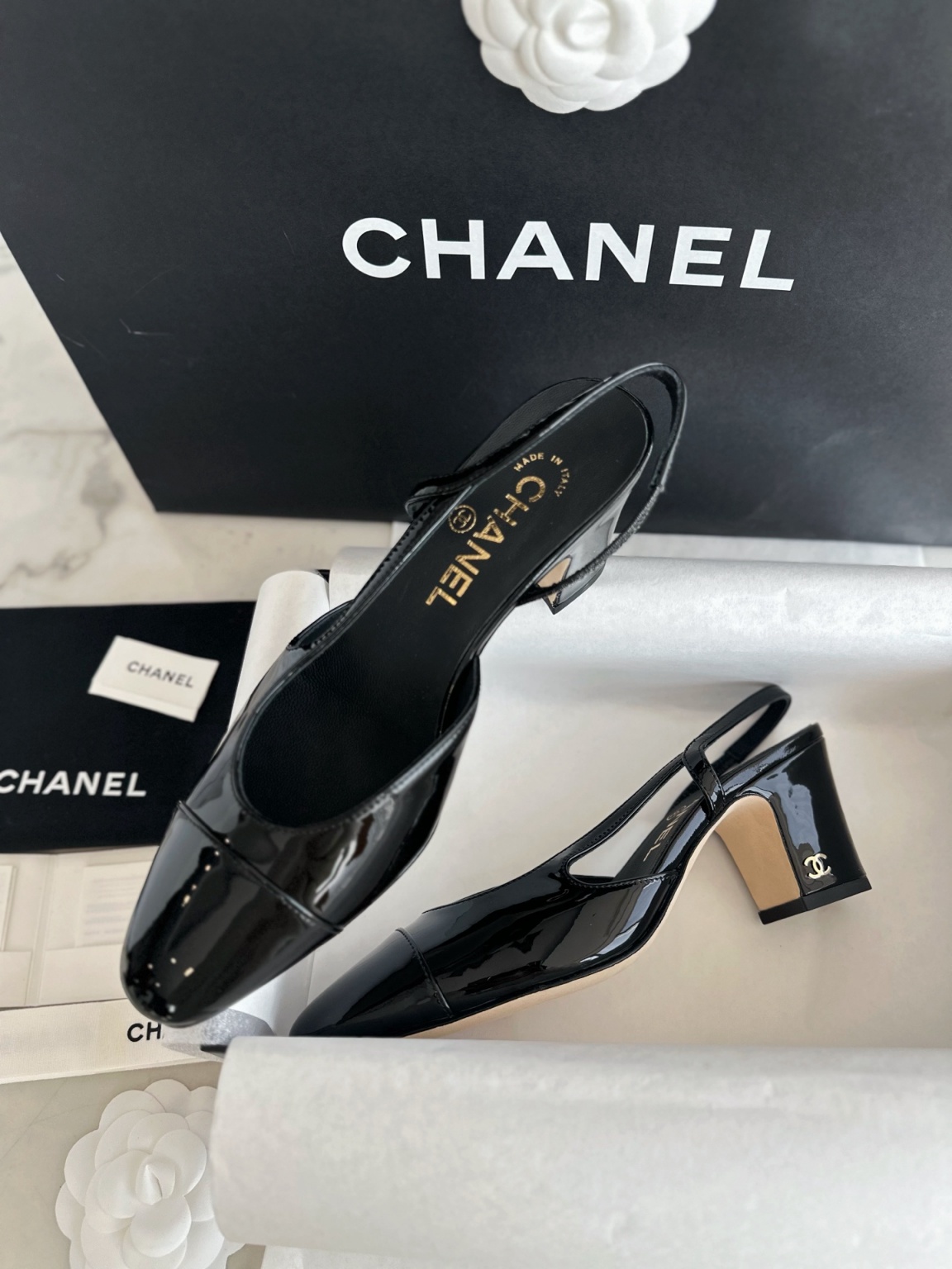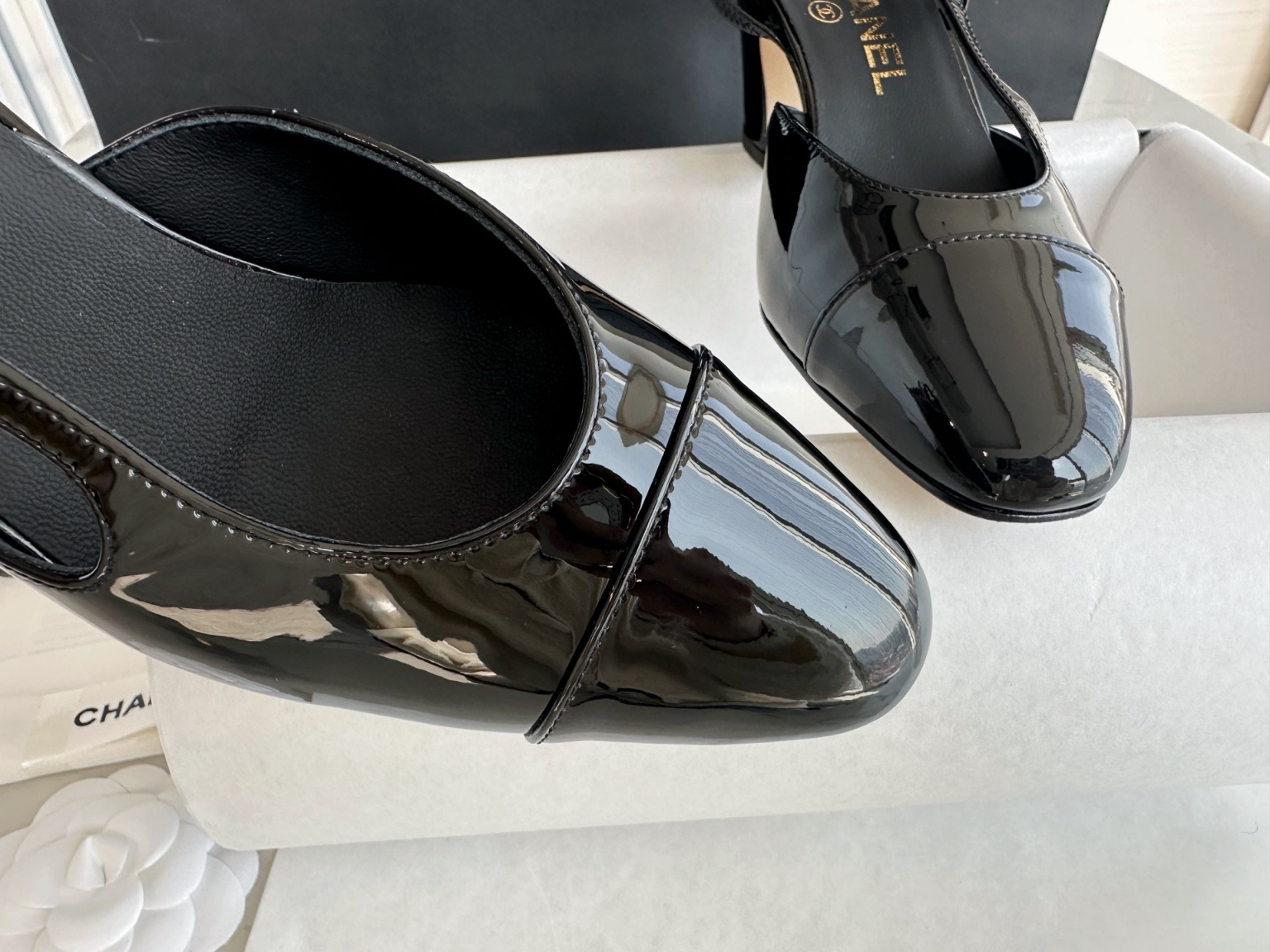 샤넬 에나멜 뒤 스트랩 힐 울트라 블랙 울트라 소프트한 So black 스틸 메탈 + 이태리 가죽 아웃솔 뒤축 처리까지 완벽 매끈한 라인감으로 클래식한 슈즈핏 다양한 장소에서 연출이 가능함