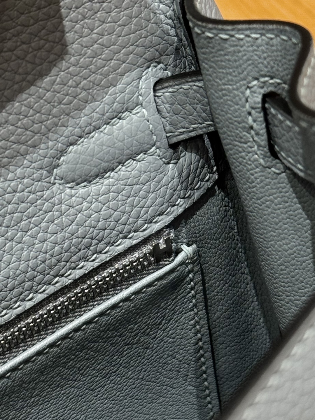 Style:Kelly Colour:J7/blue lin Size:25*17*7cm Leather:Togo From France Hardware: silver 켈리 25, 블루린 ,프랑스 수입 소가죽 실버버클, 고급스러운 풀핸드메이드 맞춤형 순수 수작업 못, 수각 금속, 정강 전기 18k 금속 주문 실사