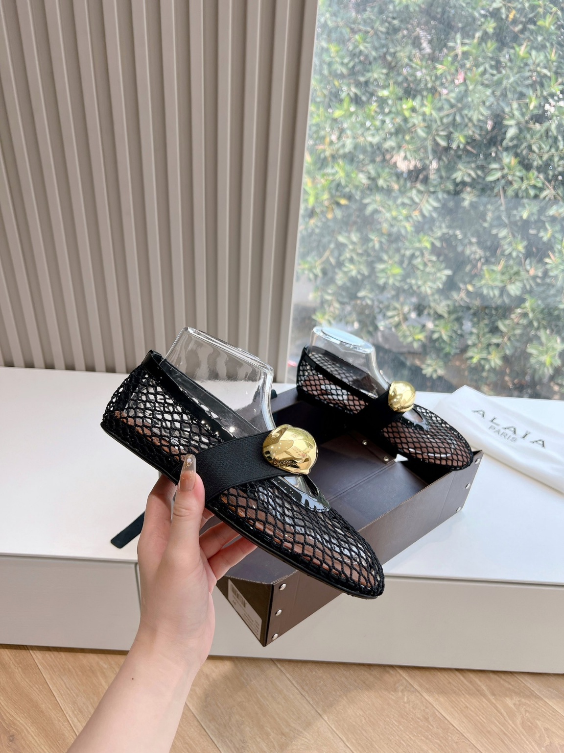알라이아 25 프렌치 테일즈 러너 발레 플랫 슈즈 킹 오브 클링이라 불리며 패션계의 가장 전설적인 디자이너 중 한 명 아제딘 알라이아는 똑똑하게 섹시함을 더하고 모던하고, 초타이트 섹시 스터드, 금속 고리, 코르셋 등 다양한 브랜드의 디자인에 등장하고 있음 겉감: 오리지널 수입 스판망 안감: 수입 소가죽 밑창 : 오리지널 몰딩 고무 밑창