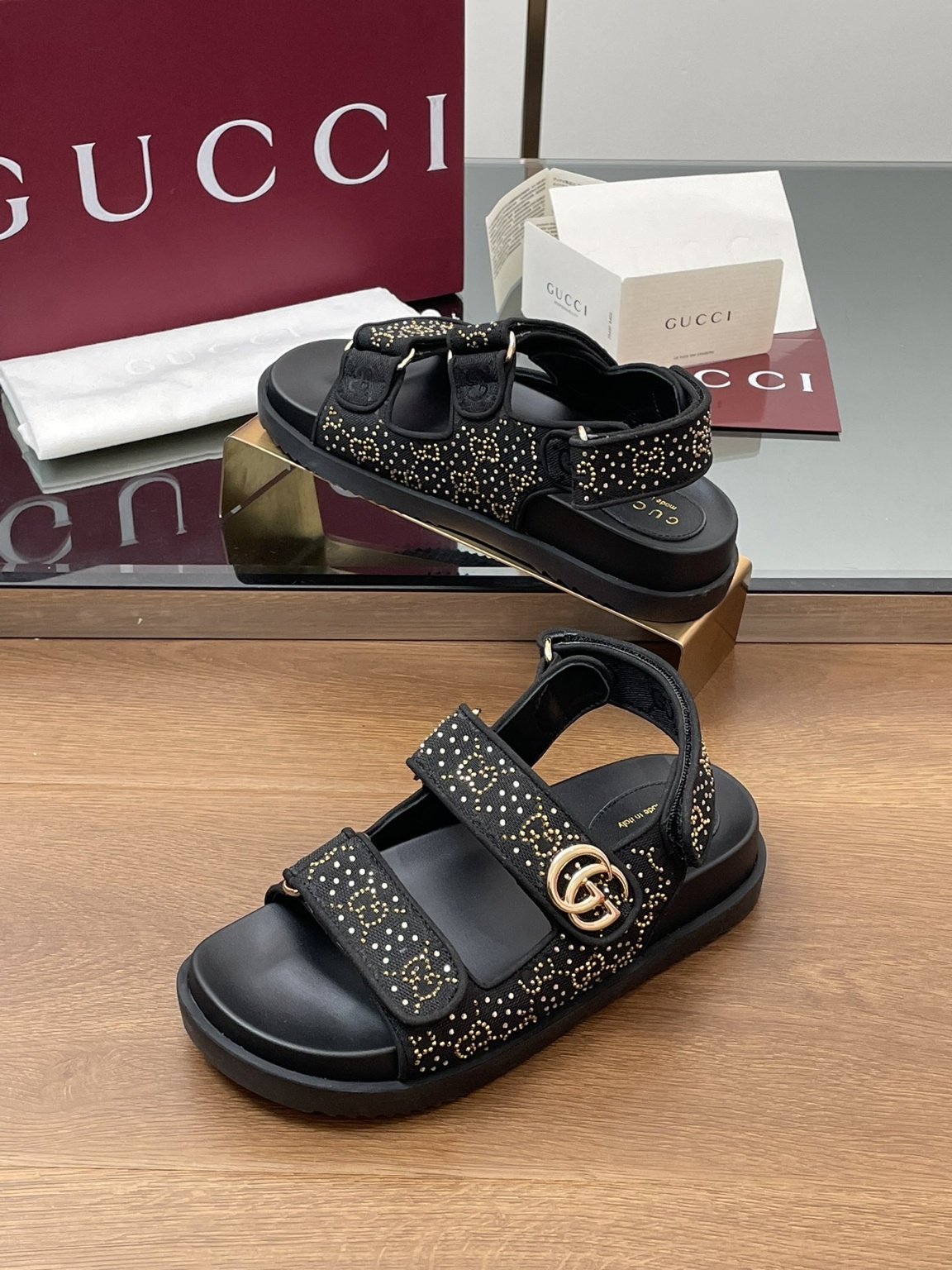 GUCCi 2025 이른 봄 시리즈 GG 크리스탈 핫픽스 벨크로 비치 샌들 최고급 구매 대행 품질 원본은 1:1로 복각되어 있으며 하나하나의 디테일이 정교하게 제작 ZP와 대등하게 품질이 우수함 겉감: 오리지널 수입 노화 GG 캔버스+큐빅 안감/징검: 수입 양가죽 안감 굽: 2.0CM 통굽 밑창: 금형 수입 고무창
