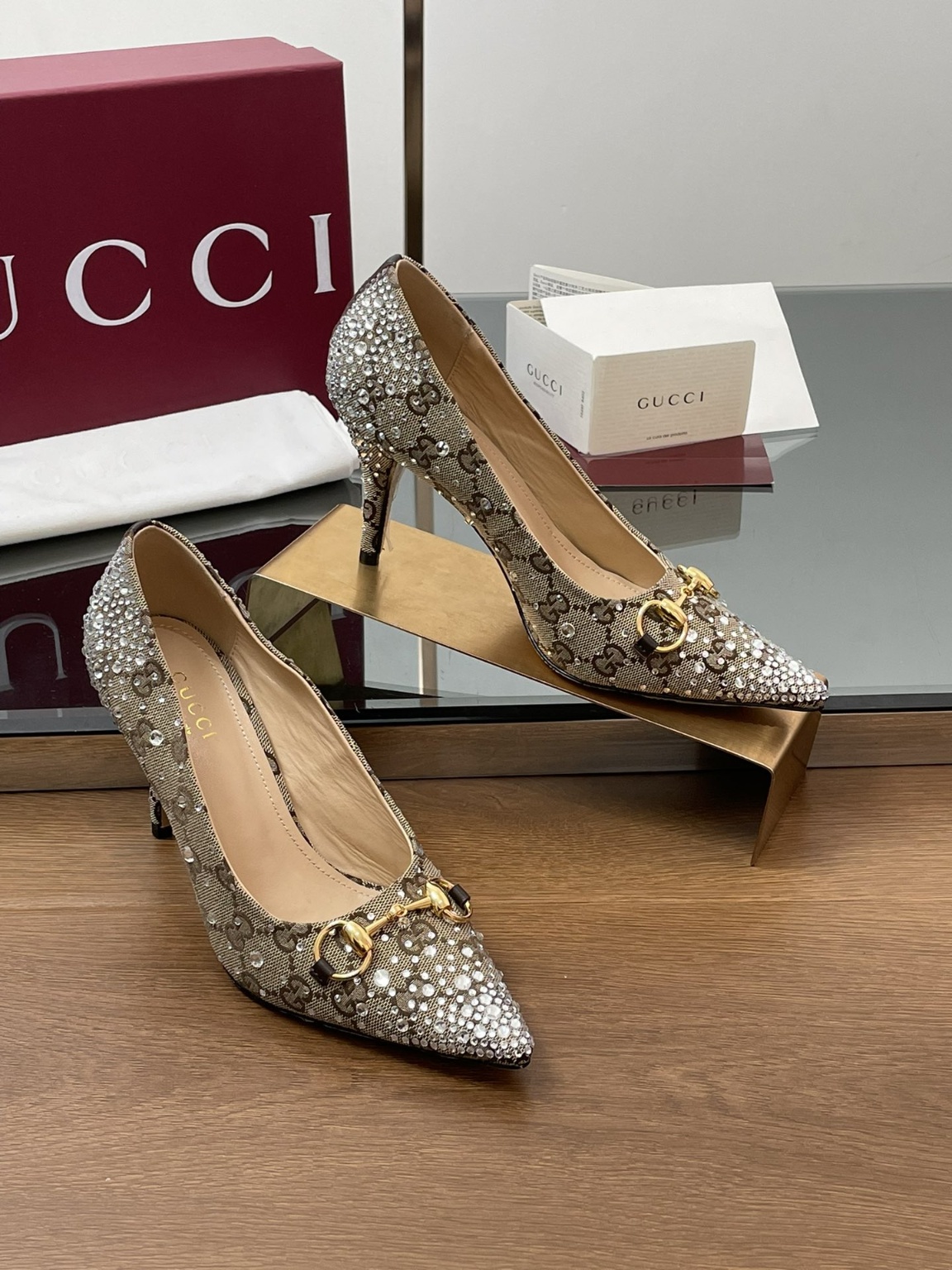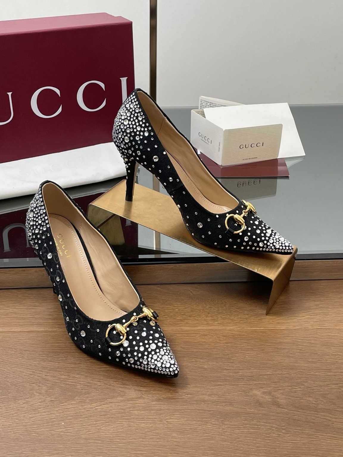 구찌 2025 신상 홀스빗 팁 토우 크리스탈 큐빅 하이힐 프리미엄 버전, 비교 환영, 오리지널 1:1 레터링 겉감: 수입고급 큐빅+GG 자수 아플리케 안감/징검: 전판무늬 고급스러운 스웨이드 밑창: 이태리 최고급 리얼 가죽창 굽: 8.5cm 패키지: 오리지널 레드 패키지 풀세트