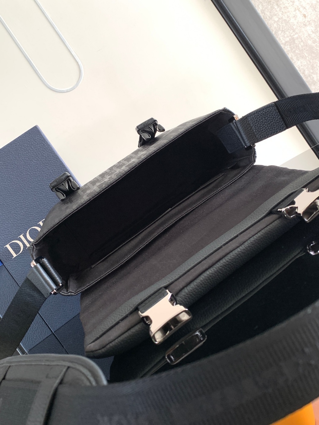 Dior Explorer 메신저백 블랙 테크니컬한 소재로 정교하게 제작 블랙 테크 원단 Oblique Mirage 프린트 Oblique Mirage 프린트는 테크닉한 소재가 특징이며 미러링 효과의 Oblique 프린트로 격식을 높여 Dior의 정교한 공법이 돋보임 블랙 알피 소가죽, 전면 메탈 코팅 신주 DIOR 로고 사이드 디올 패치, 안쪽에는 DIOR 로고로 장식 크리스찬 디올 나일론 자카드 밴드 플랩 여밈과 DIOR 로고 버클 매치 조절가능 CHRISTIAN DIOR 로고 나일론 자카드 숄더 스트랩 장식 가죽 패드 모델번호: 1ESME061YIH 사이즈: 31 x 21 x 8cm