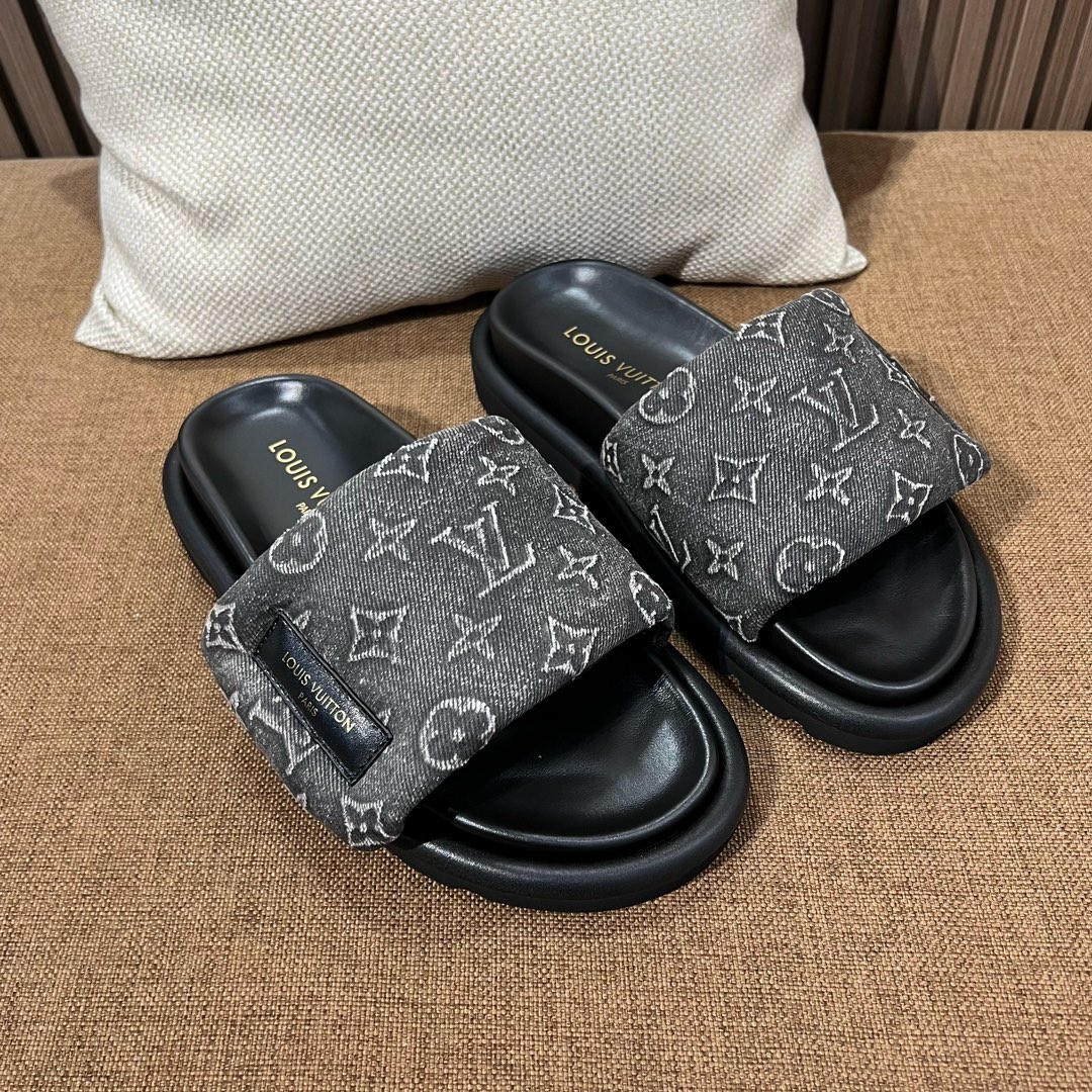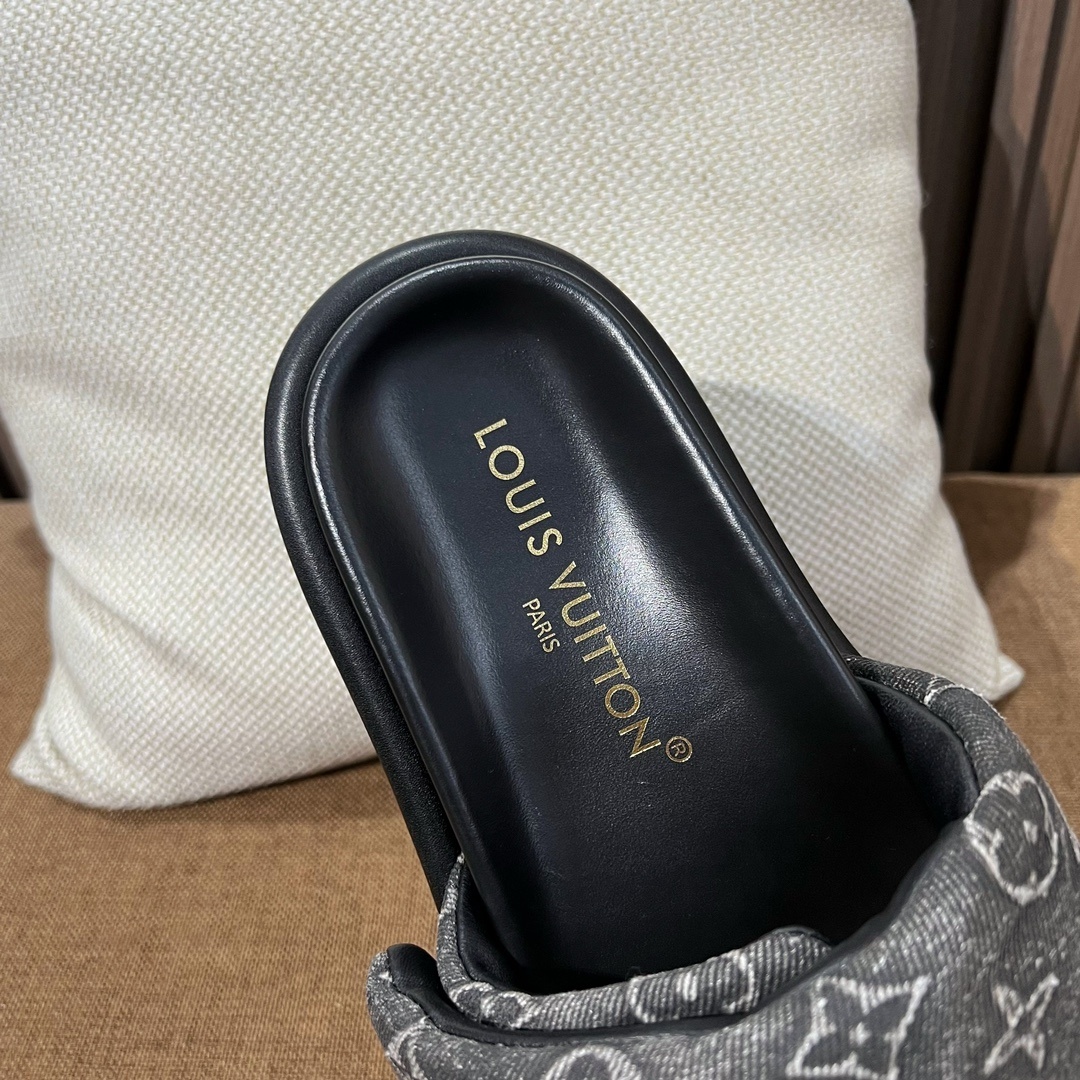 루이비통 대박 슬리퍼 빵 모양의 신발이 너무 예뻐요 모노그램 엠보 패턴으로 발이 날씬해 보이고 바닥은 순수 수입 라이크라 면으로 고주파 공법으로 제작된 올드 플라워 엠보싱 안감은 고탄성 스펀지, 수입 친환경 고무 발포 바닥