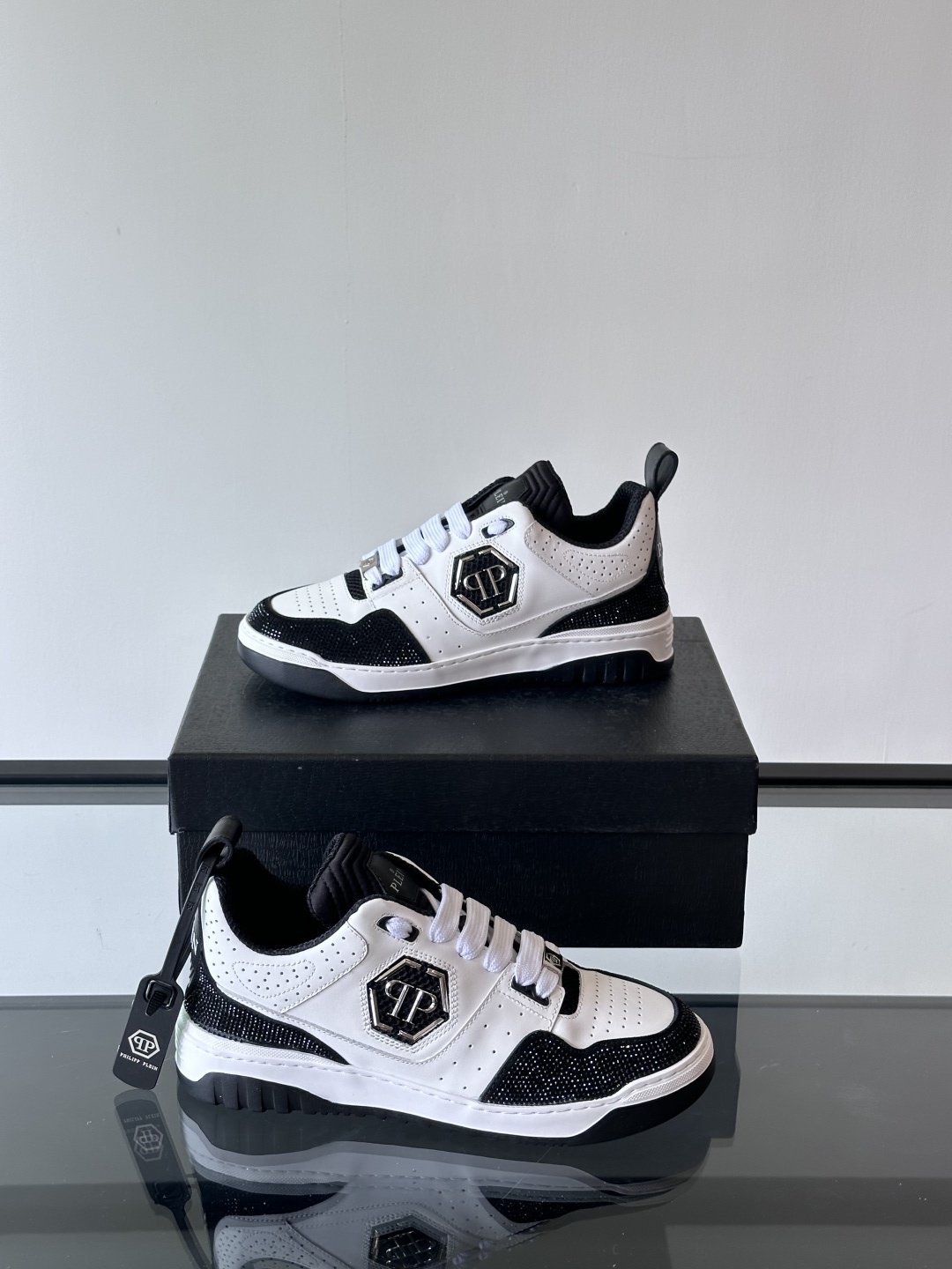 PHILIPPLEIN-필립 플레인 남성 로우탑 스니커즈 핫피스, 소가죽 포인트 디자인 가죽 바닥, 가죽 안감, 큐빅 디자인 보기 좋고 코디하기 좋음 가볍고 밑창이 편안함
