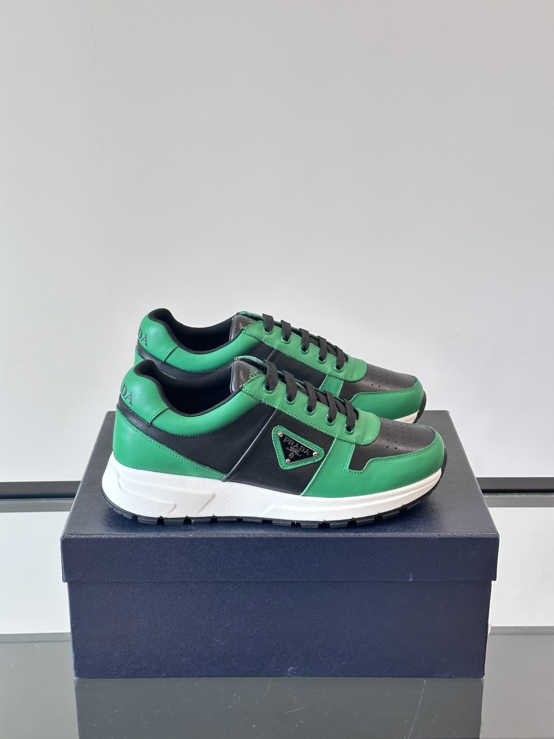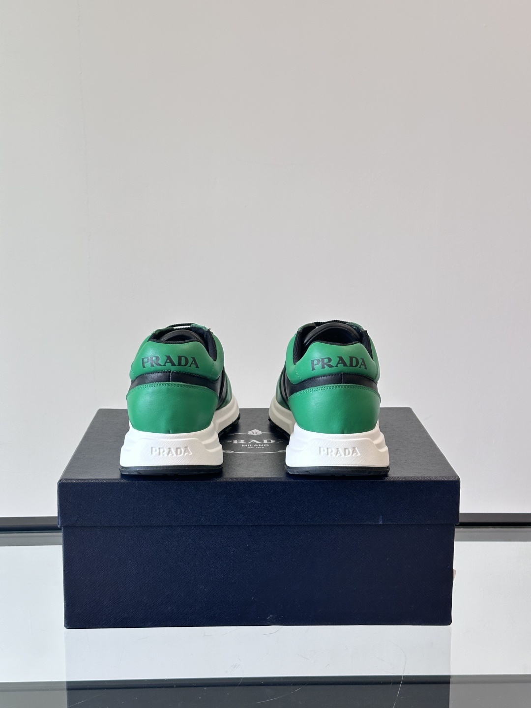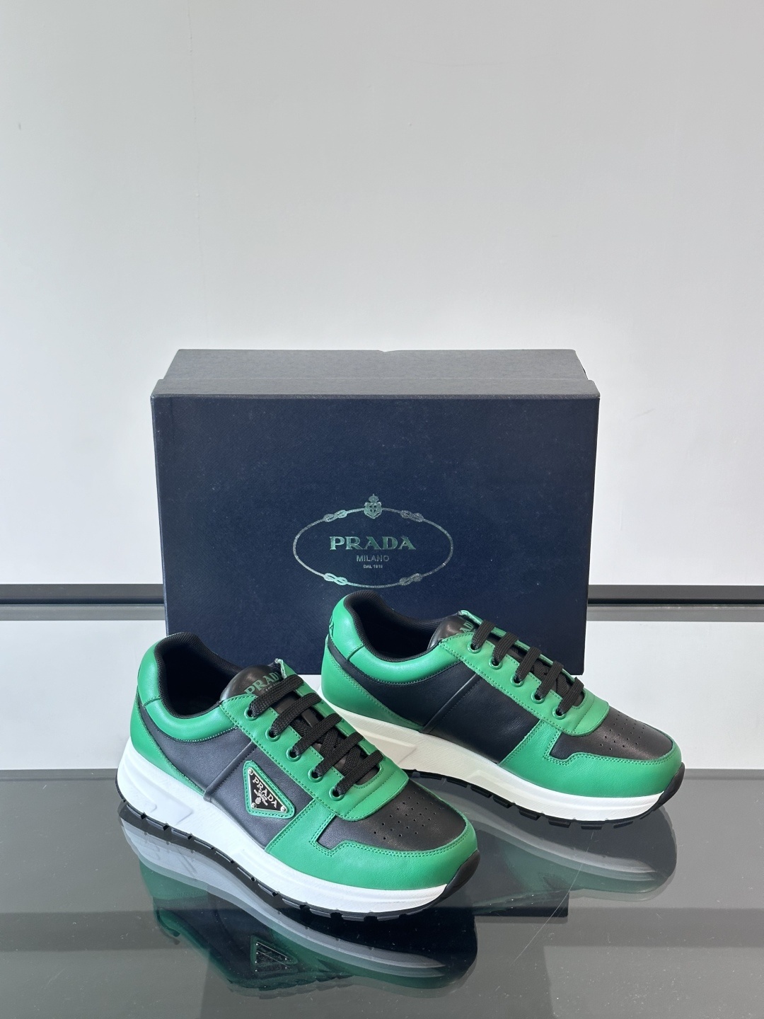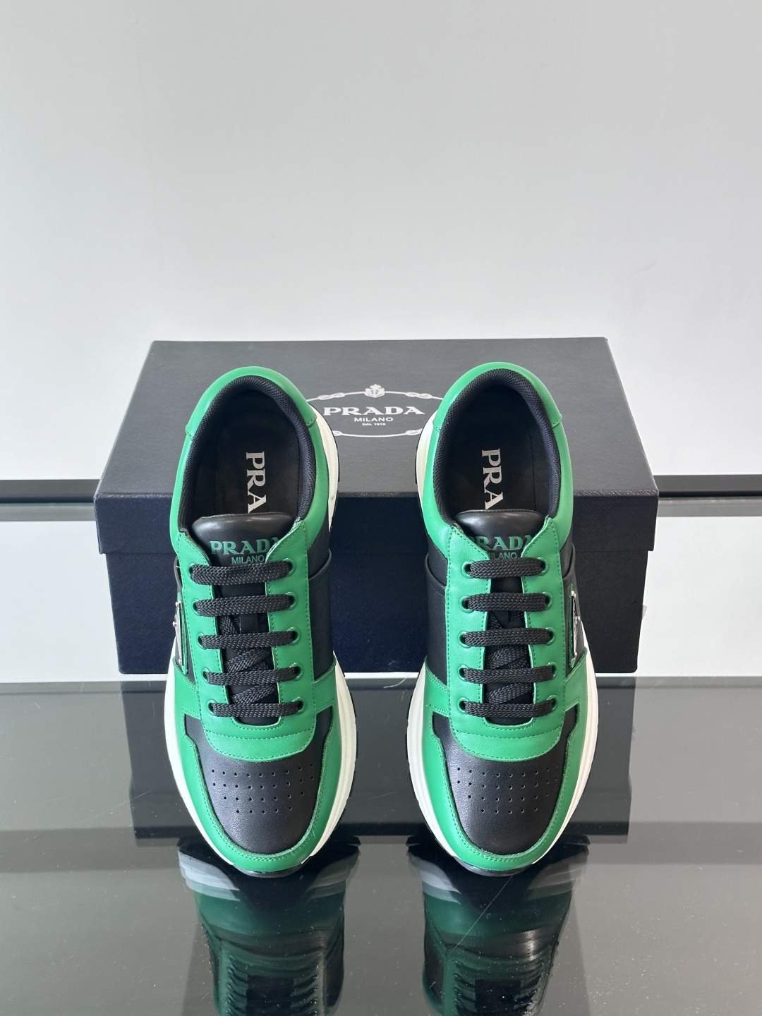 프라다 2025 신상품 남성 패션 운동화 수입 송아지 가죽 소재 부드럽고 편안함 안쪽 앞판 송아지 가죽과 송아지 깔창 신발 옆면 클래식 로고 장식, 오리지널 고무창 미끄럼 방지 및 내마모성이 뛰어난 클래식