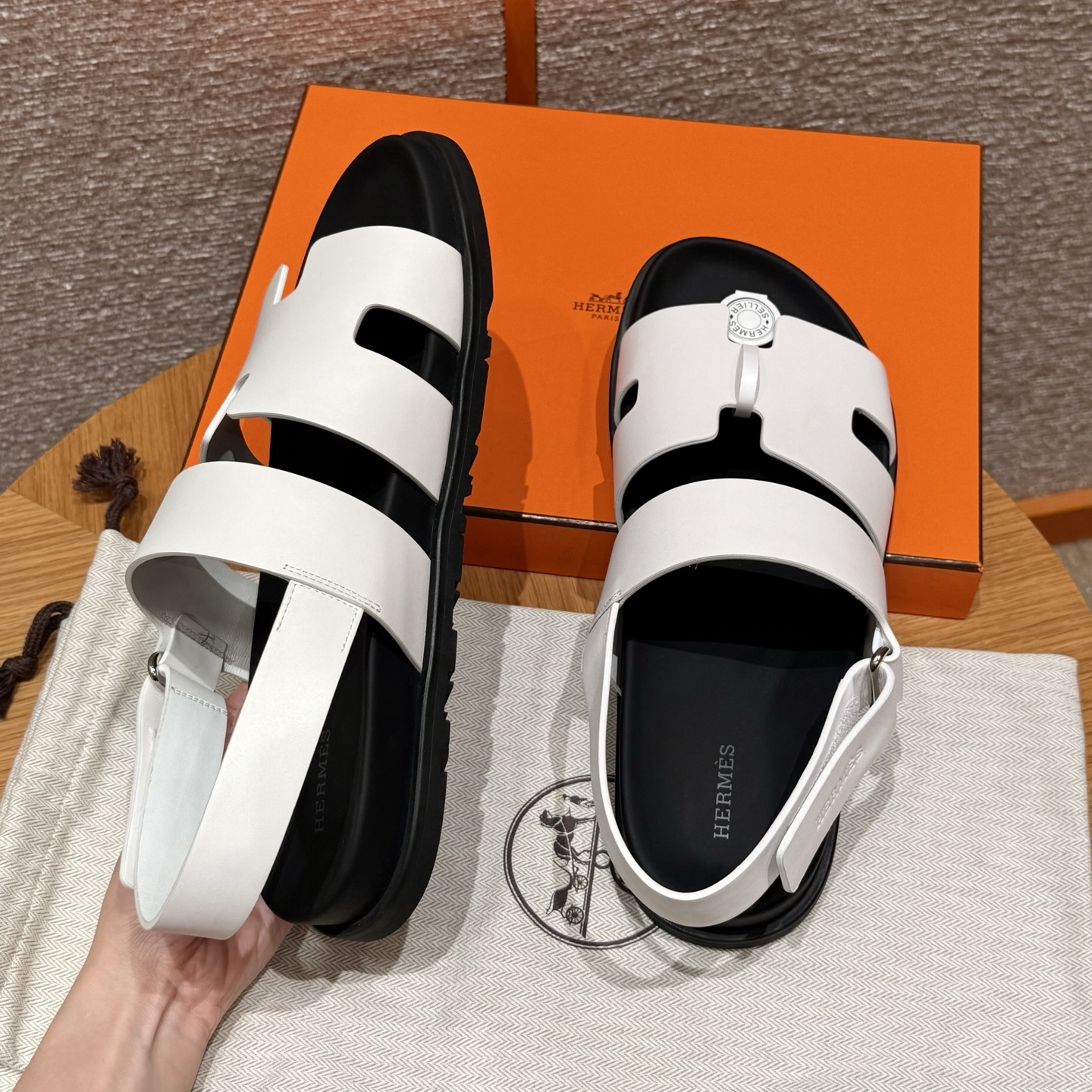 스타일: Genius 남성 샌들 색상/Colour: 화이트/01/Blanc 갑피 소재/Upper material: 송아지 가죽/calfskin/평직 swift 바닥재 / Bottom materials: 고무창 / Robber outsole 저희 매장 제품은 모두 수작업으로 제작