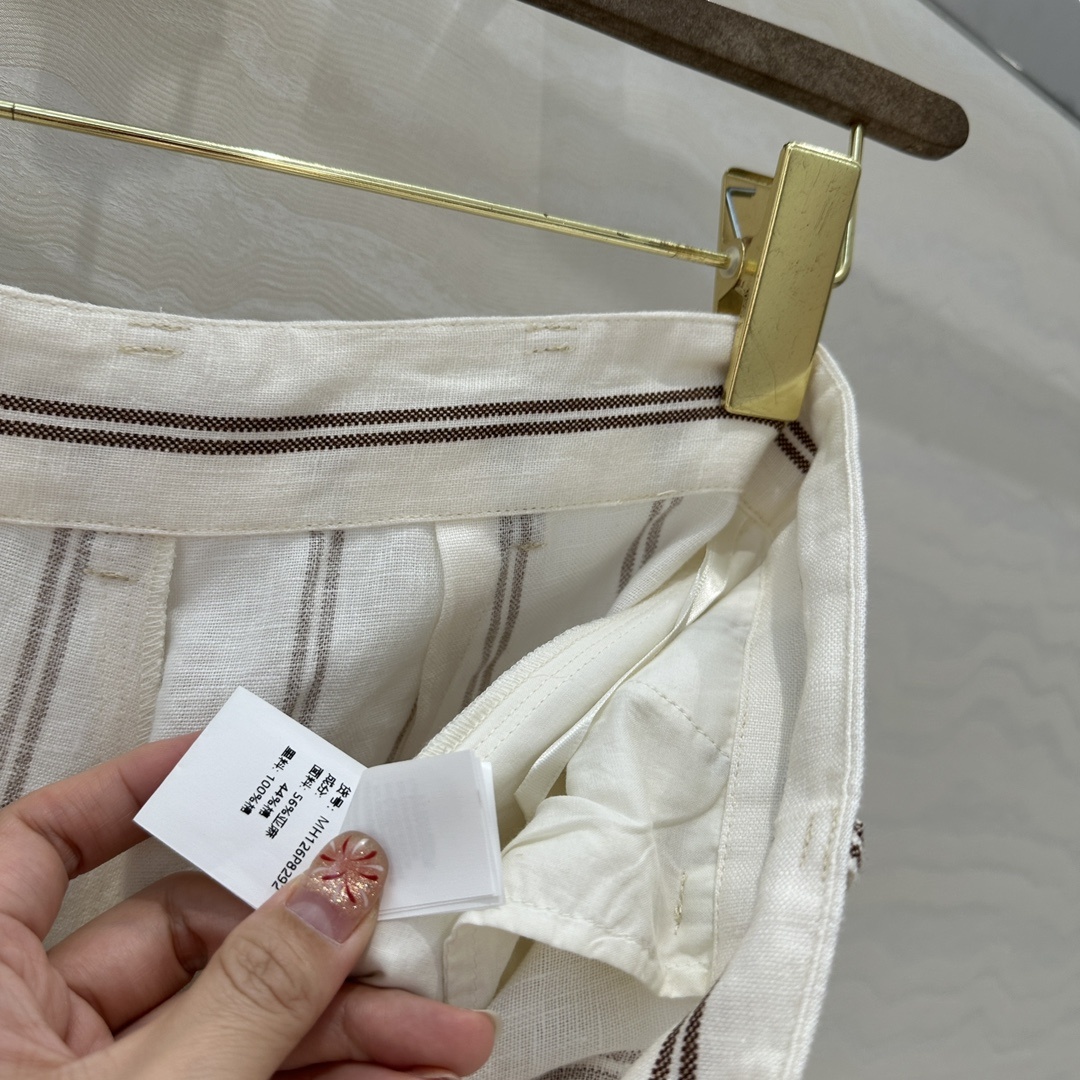 브루넬로쿠치넬리 BC 스트라이프 린넨 정장 바지 수입 헤비 리넨 소재는 질감이 매우 넓고 편안함 클래식한 미디엄 하이웨스트 일자핏의 디자인으로 풀 포지셔닝된 스트라이프 컷팅이 미니멀하고 럭셔리하며 수입 원단의 질감이 섬세하고 세련되고 우아함 통근 코디로 부담 없이 스타일리쉬하게 연출하기 S사이즈: 허리68 힙94 바지길이94