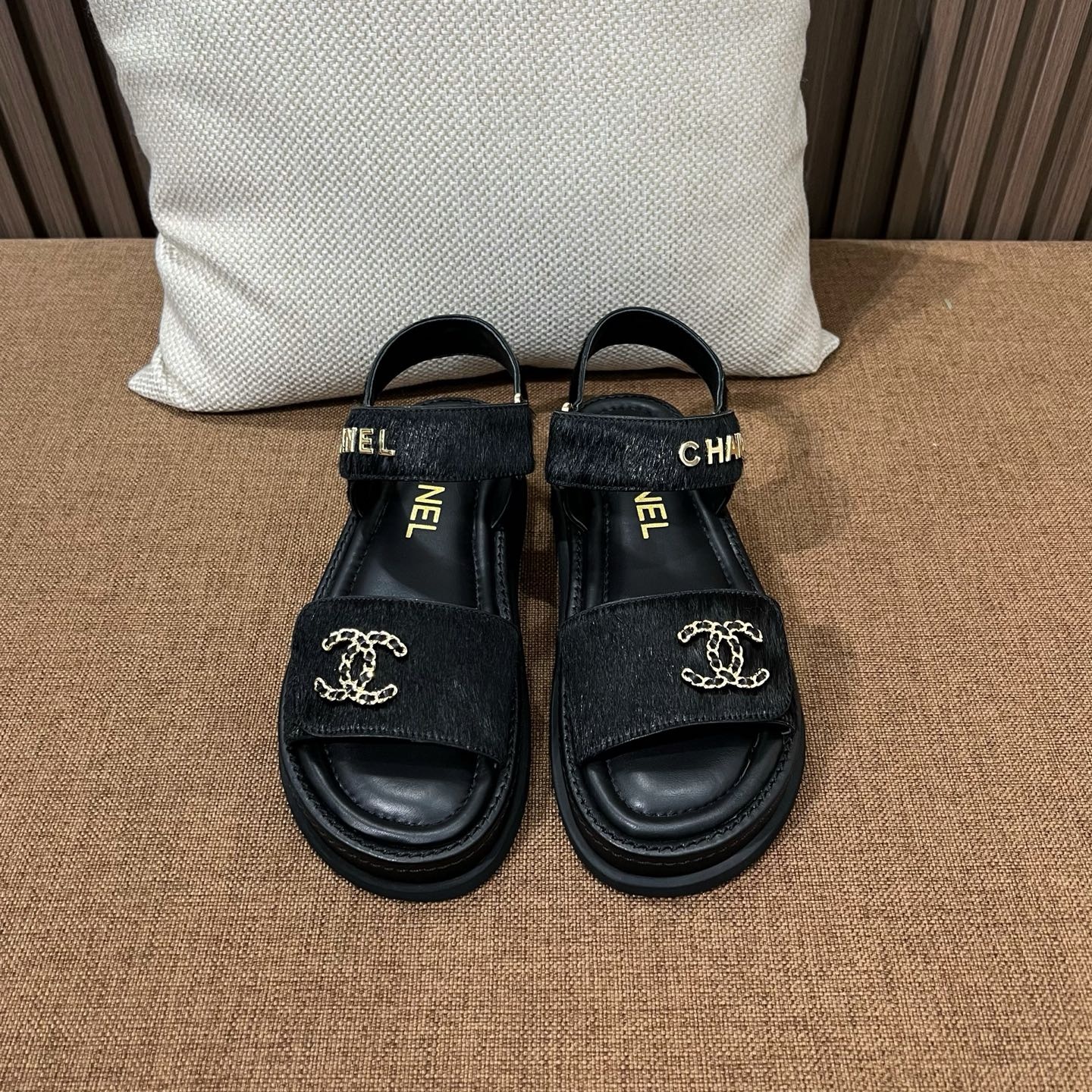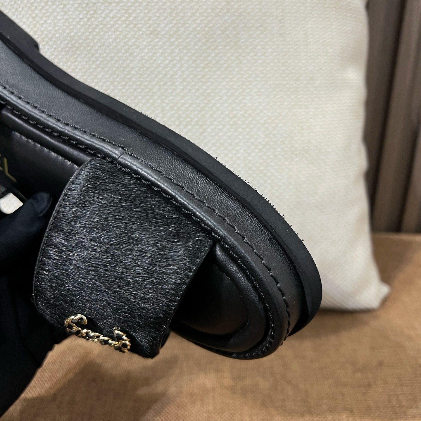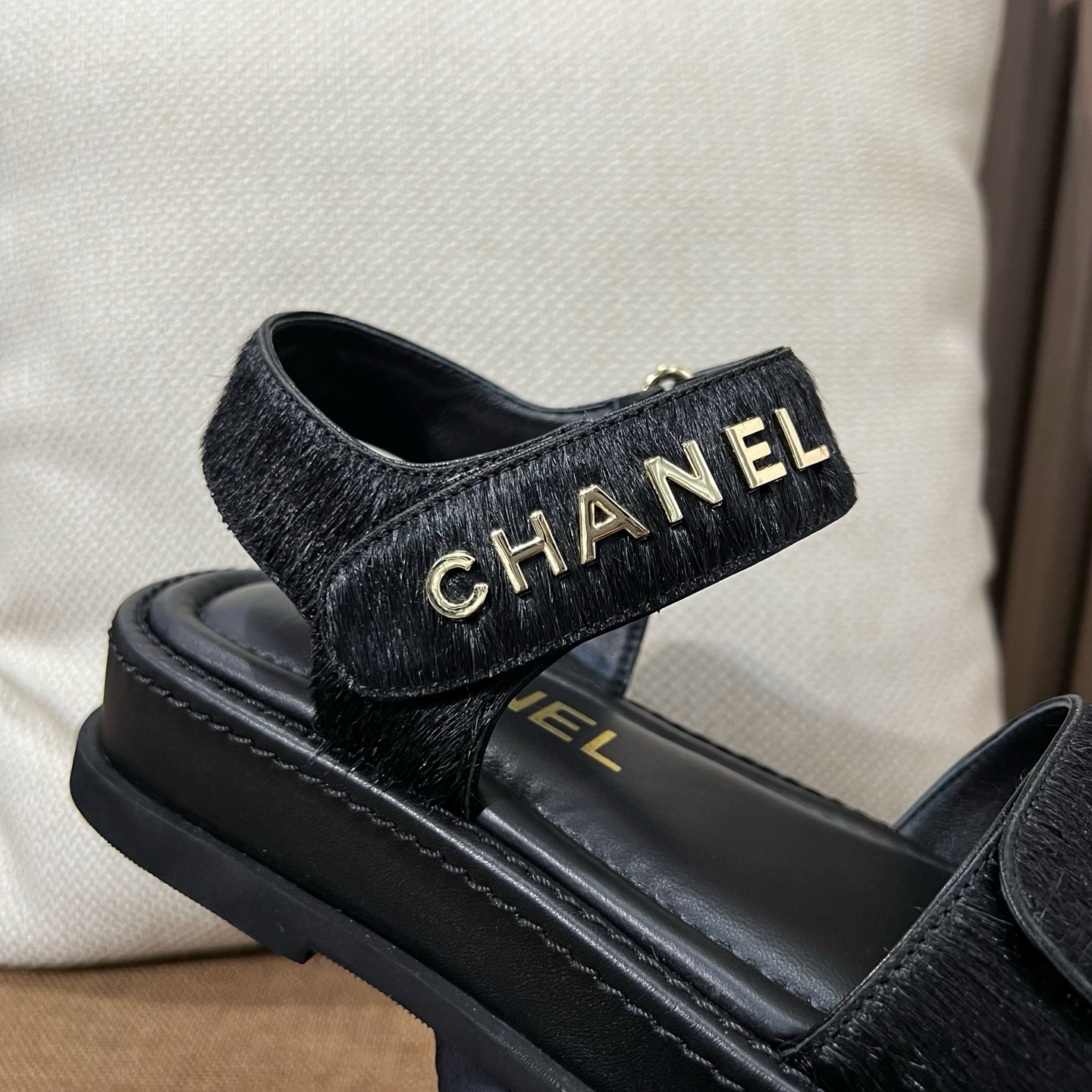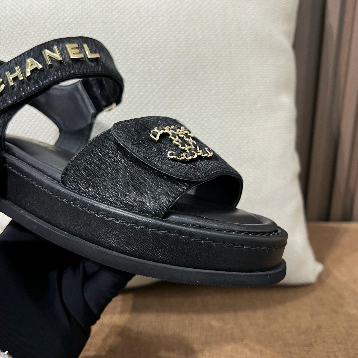 샤넬 CC 로고 앙고라 샌들 원단은 수입 앙고라로 질감이 부드러움 맞춤 제작 더블 C 스트랩 버클과 메탈 스터드로 광택이 좋음 리얼 가죽 베젤 발판 받침대, PVC 경량 소재 콤비네이션 깔창 바닥에 스판 소재가 더해져 보송보송 솜을 밟은 듯