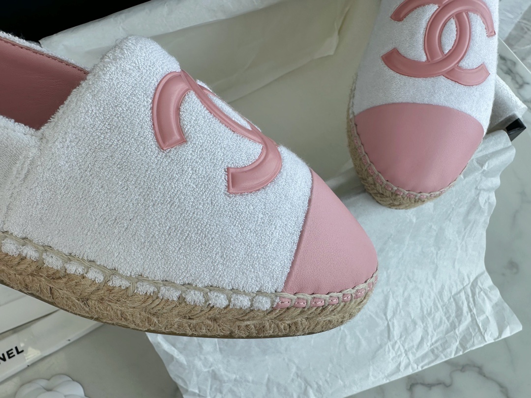 샤넬 24P 핑크테리 캐주얼 에스파듀 울트라 큐티 울트라 핑크 울트라 프린세스 배색 퀼팅타월 피치양가죽+생고무창 핑크-화이트 콤비 사랑스러움 배가됨 파스텔톤에 뽀글이 너무 소녀같아요
