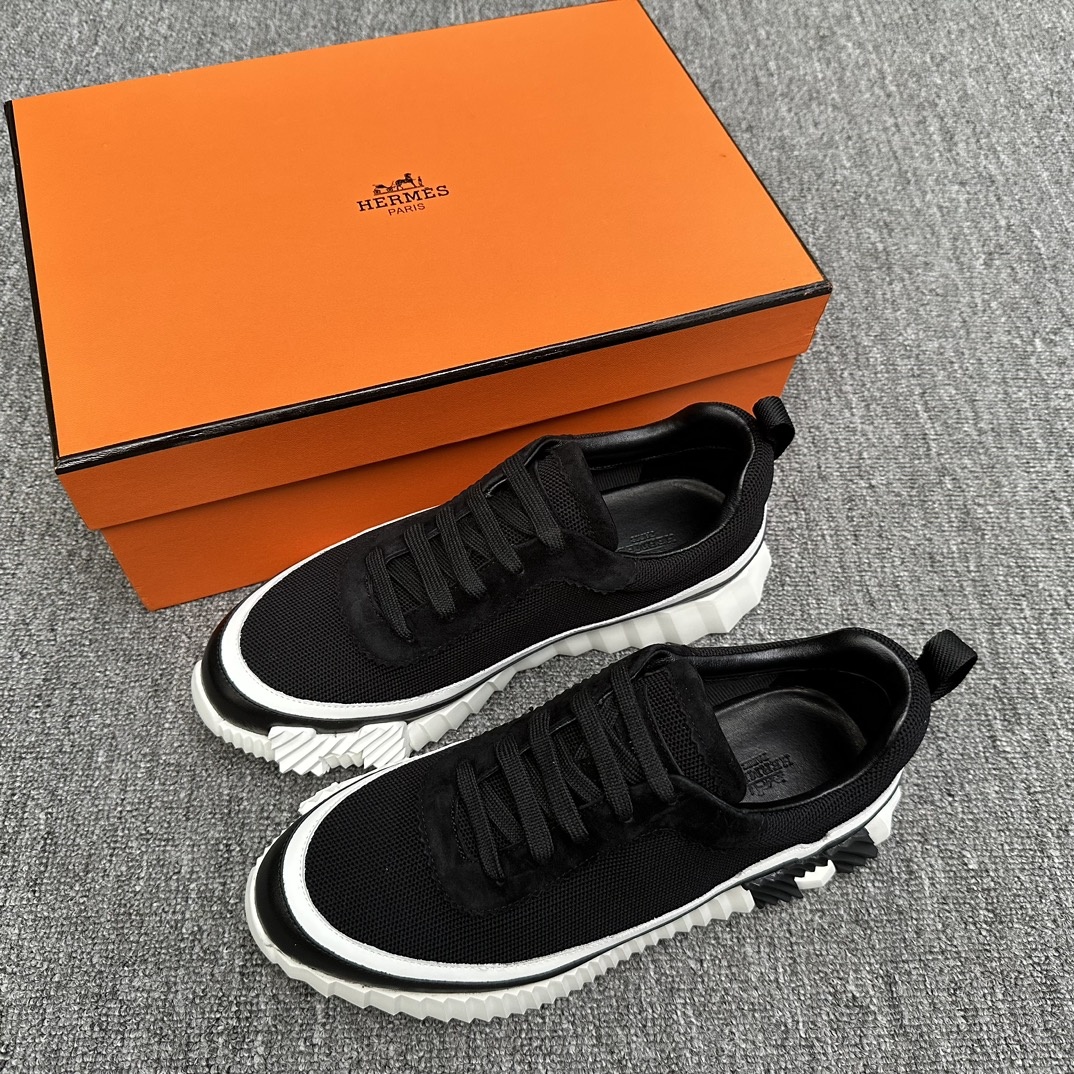 Hermes Bouncing 에르메스 바운싱 스니커즈 매장 동시 발매 바닥은 테일러드 라이크라 스웨이드 라이크라 블랙 스웨이드 안감 부드러운 스웨이드 Ipeva+tpu 밑창 가벼운 쿠션 밑창장식 펀칭 러버 플러그로 활기차고 스타일리쉬하게 연출