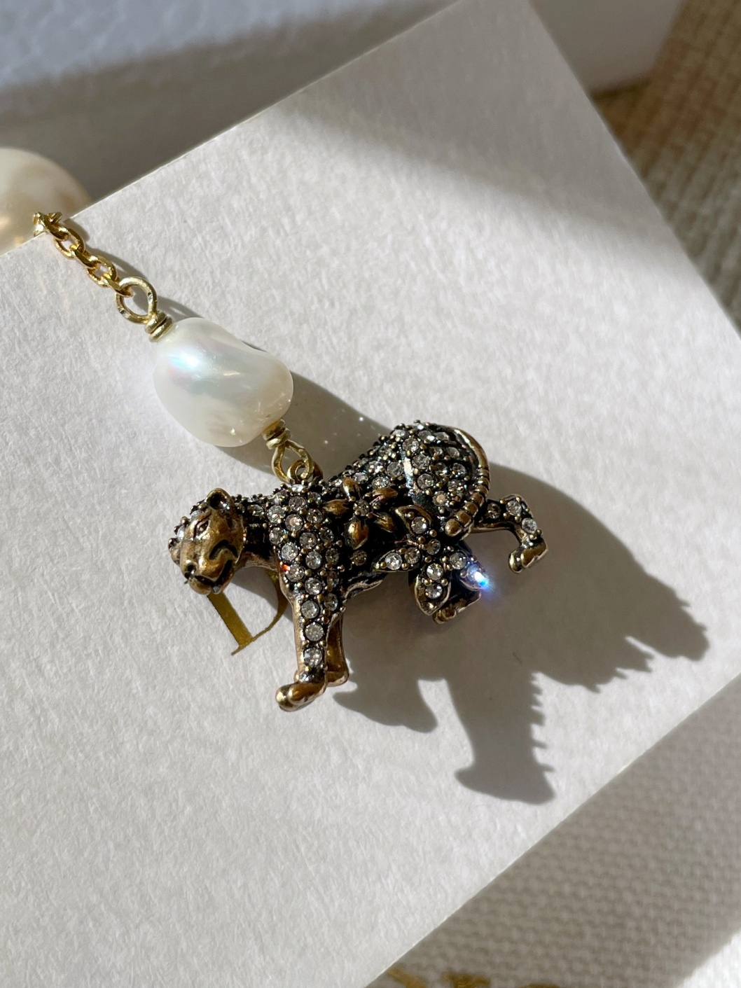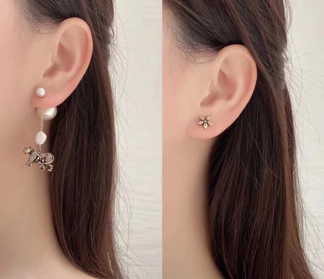 디올 비대칭 꽃호랑이 귀걸이 다양한 착용 방법으로 일상적으로 귀걸이만 착용할 수 있으며 모임 참석 시 펜던트를 추가하여 분위기를 더함 ZP5000, ZP를 진짜 구매해서 개발 ZP 일치 신주 소재, 특별 제작 인조 진주 수입 스와로브 큐빅, 천연 담수 진주 귀걸이 높이 약 5.6CM, 사자 너비 약 2.3CM, 작은 꽃 지름 0.9CM