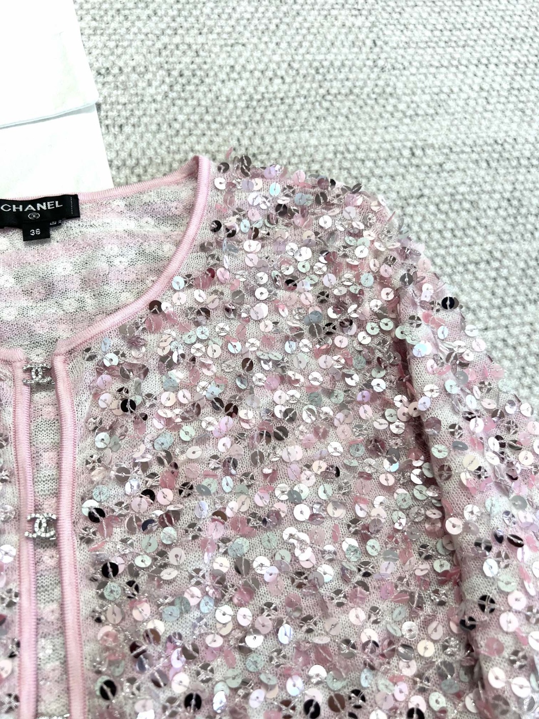 CC 비즈 카디건 14핀과 16니트기를 사용하여 조각을 만든 다음 천 조각에 구슬 조각을 놓으면 블링블링이 매우 분위기 있고 4가지 종류의 구슬 조각을 맞춤 제작하여 광택과 효과를 규칙적으로 정렬함 이런 종류의 비즈 실은 국내에서 거의 없는 기계만이 만들 수 있으며 시간과 노동이 많이 들어요 테두리를 만들고 밑단에 연분홍 실을 맞춤 제작해 한층 더 신선하게