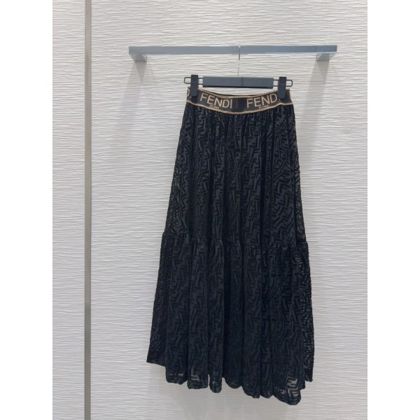 펜디 2025 신상 시스루 수용성 레이스 스커트 생생한 레터링 프린트 페미닌 이 기장은 비율도 잘 살리면서 우아하고 진중하게 홀드할 수 있어 어디에나 편하게 입을 수 있음