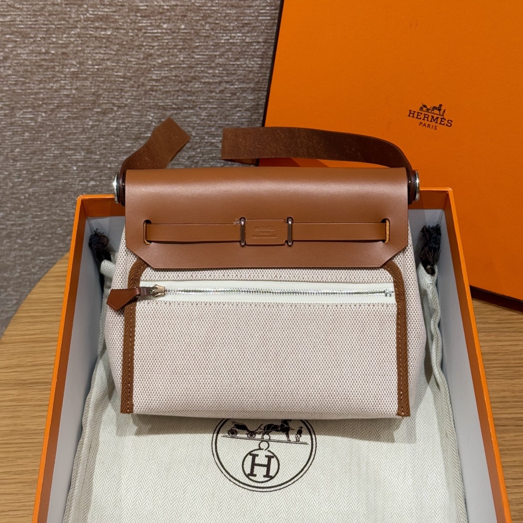 Style:herbag mini Colour:ecru/beige/fauve Size:20*17*7cm Leather:canvas and cowhide Hardware:silver 미니 허백, 연베이지/베이지/연갈색, 캔버스패치 소가죽 숄더백팩 실버 버클, 프리미엄 올핸드메이드 전용 커스텀 주문 실사