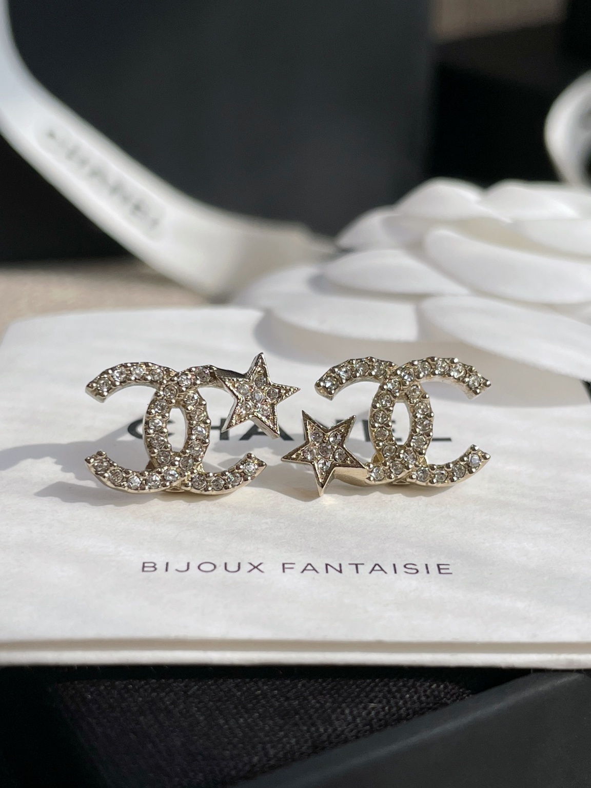 샤넬 더블C 위아래 별 이어링 유일하게 진짜 모델로 ZP를 구매하여 개발 ZP 일치 신주 소재, 수입 스와로브스키 크리스털 스톤 이어링 폭 약 1.5CM, 높이 약 0.9CM