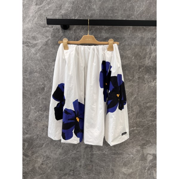 미우미우 25 이른 봄 신상 레터링 로고 아플리케 플라워 프린트 스커트 오리지널 맞춤 순면 프린트 원단으로 여러 겹의 주름 공법으로 전체적으로 두껍고 꼿꼿하며 입체감이 살아있어 거리를 걷는 것이 마치 쇼에 있는 듯한 느낌
