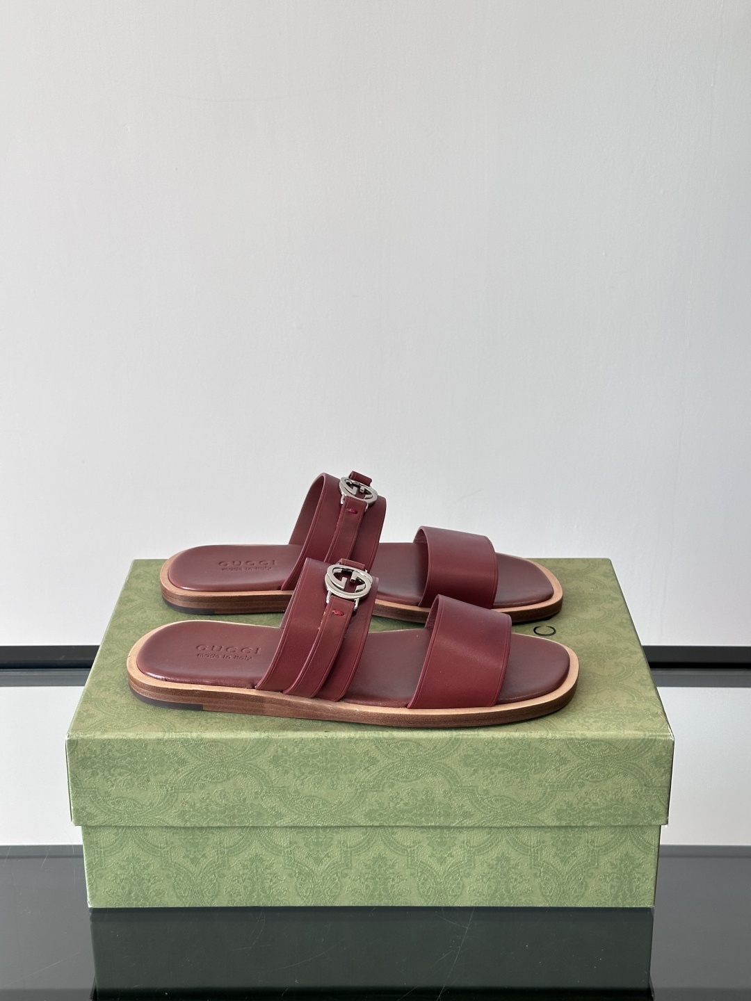 구찌 프리미엄 가죽 스트랩 더블 G 남성 슬리퍼 Gucci Lido 컬렉션 고품질의 클래식한 아이템으로 소재가 세련되고 핏이 여유롭고 편안함 신발 표면은 수입 소가죽, 수입 도톰한 소가죽 밑창 고급스러운 소재로 제작