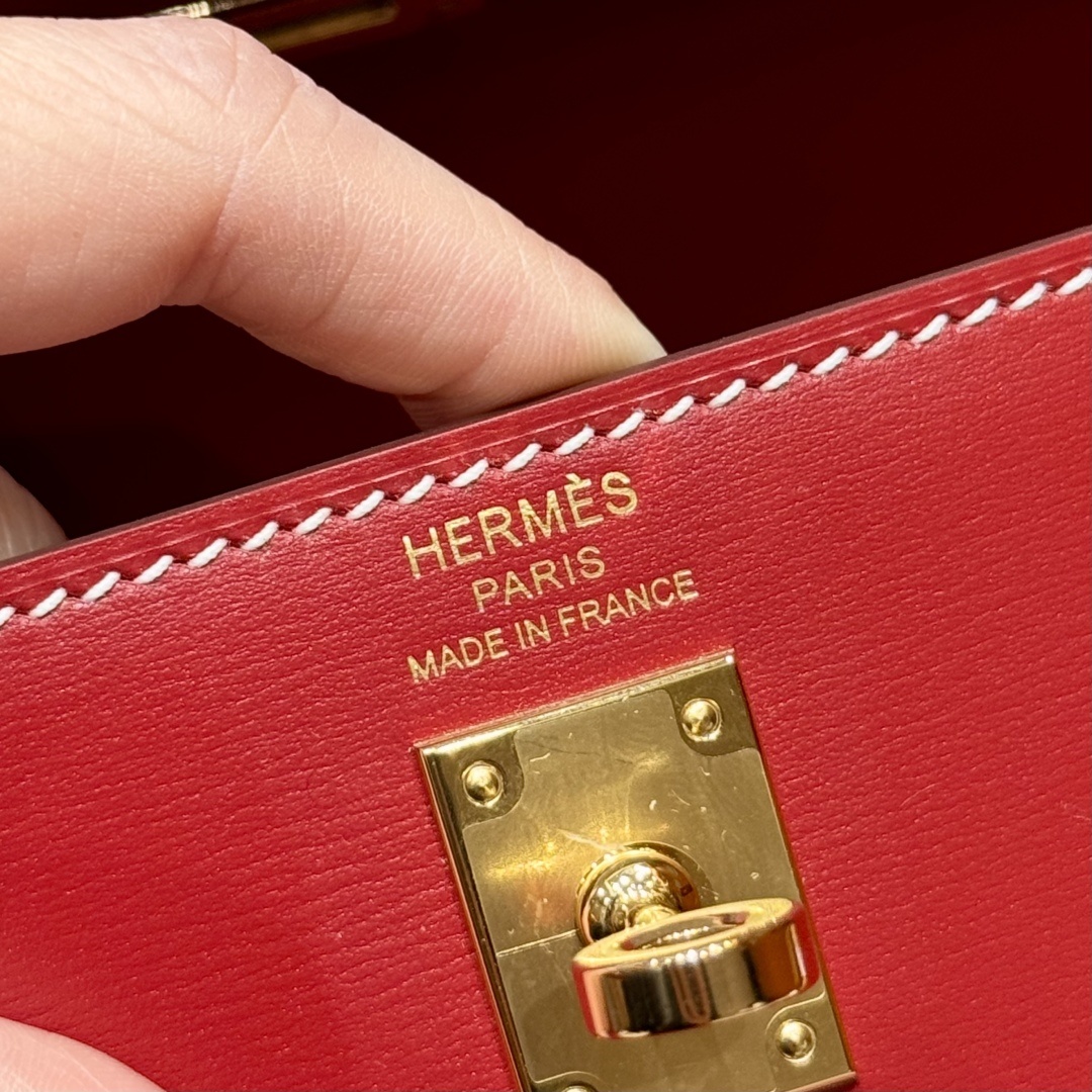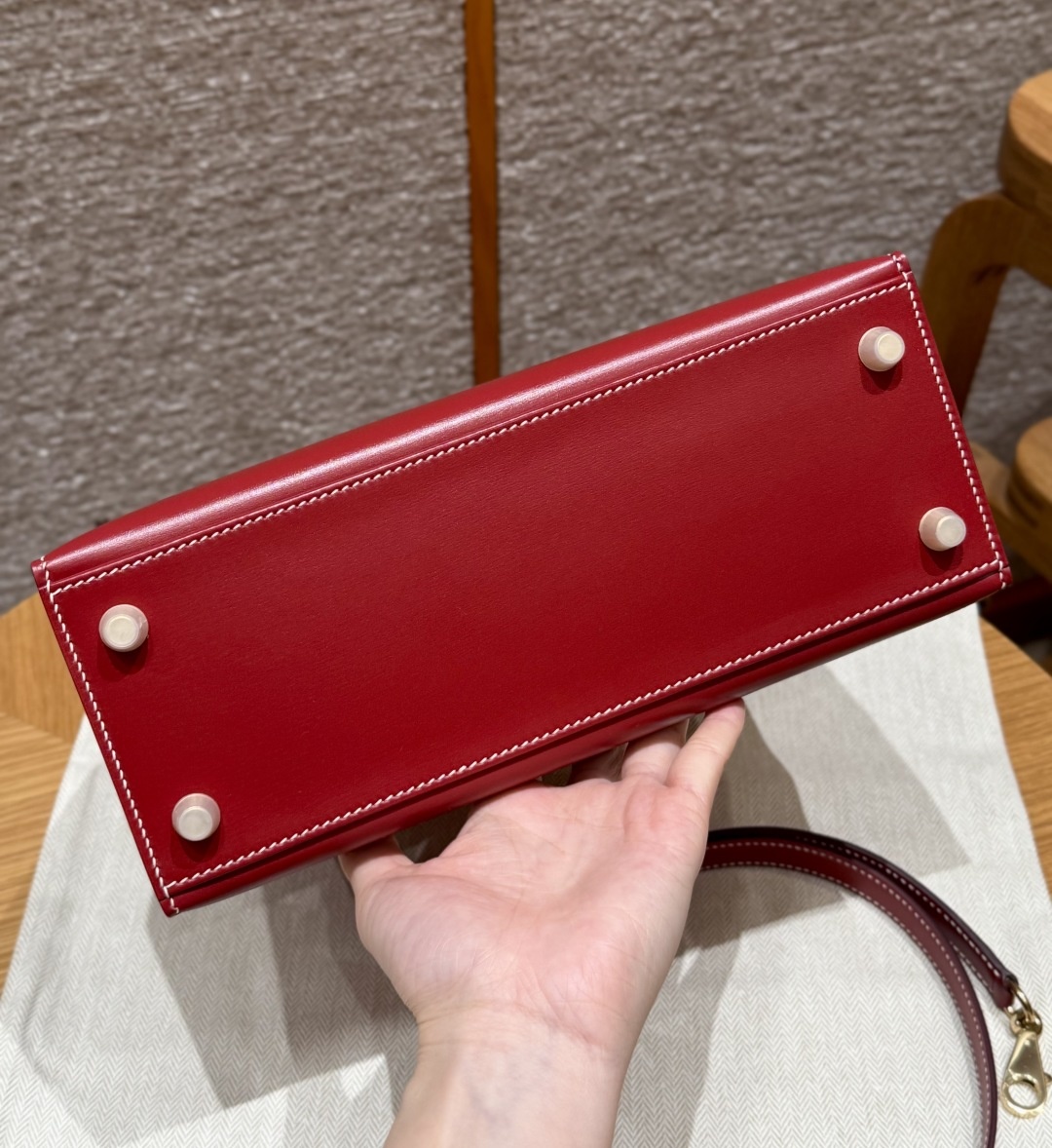 Style:Kelly Colour:5x/Rouge piment Size:25*17*7cm Leather:Box From France Hardware: gold 켈리25, 루즈피그먼트-화이트 실크, 프랑스 복스 소가죽 골드 버클, 고급 수제 맞춤 제작 핸드메이드 못, 핸드메이드 철물, 정강 도금 18k 철물 주문 실사