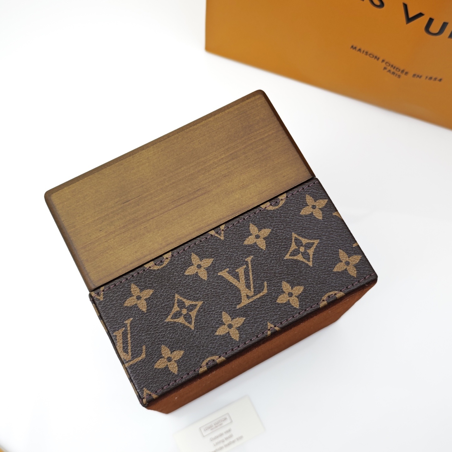 루이비통 티슈케이스 하단부에 Lv클래식한 노화가죽으로 포인트를 주고 상단부에 호두나무 소재 비주얼이 좋은 홈메이드 아이템 사이즈: 15.5*15.5*14.5cm