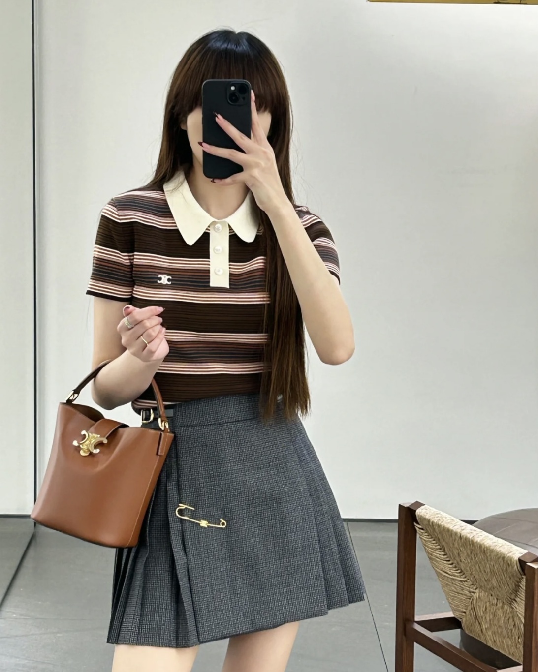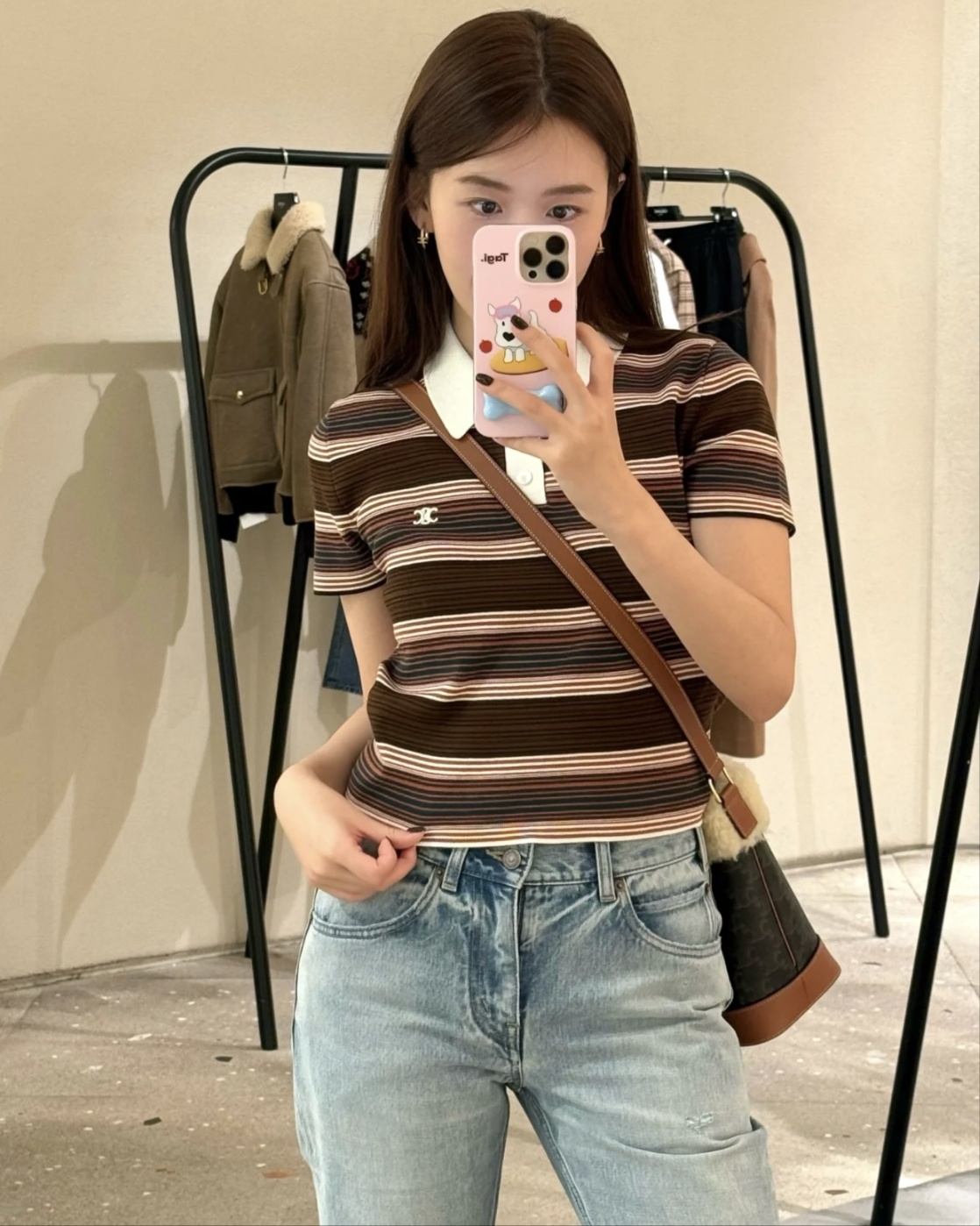 셀린느 면 폴로 넥 반팔티 청춘배색, 귀엽고 앙증맞은 핏, 적당한 두께감 오리지널 100% 정소면, 오리지널 컬러 배색 부드러운 터치감, 신축성, 여성스러운 핏, 스트라이프 제작 슬림한 줄무늬는 말할 것도 없고 반칙일 정도로 아름다워요