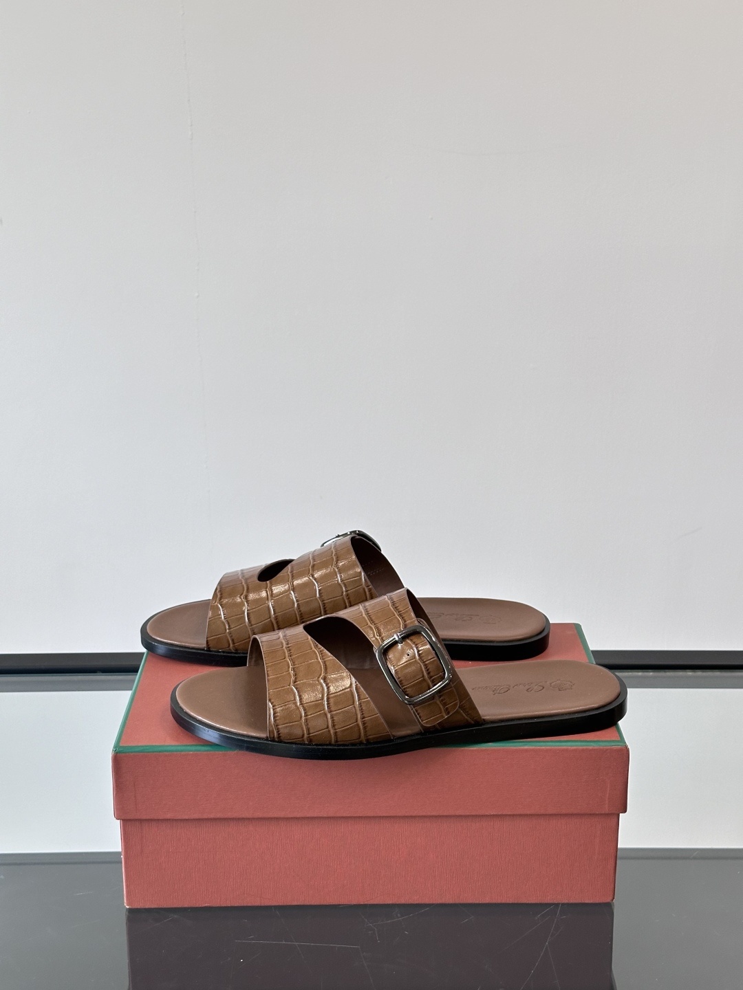 LP 로로피아나 신상품 남성 소가죽 버클장식 슬리퍼 최고급 소가죽 소재에 부드럽고 친근한 브랜드 로고 버클장식 가죽 바탕에 가볍고 편안한 발 스타일리시하고 다양한 색상 선택 가능