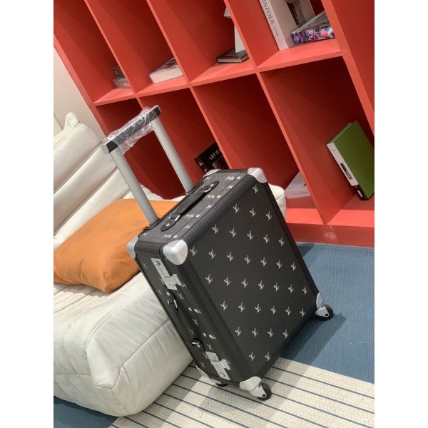 루이비통 Rolling Trunk 캐리어 모노그램 캔버스와 가죽을 소재로 하여 코너를 보강하고 나무와 스터드가 돋보이는 전통적인 하드 박스 비밀번호 잠금장치가 안전하게 보호됨 주 칸막이 지퍼 포켓과 탈부착 가능한 칸막이가 있음 모노그램 코팅 캔버스, 소가죽 프릴 폴리아미드 안감, 알루미늄 금속부품 슬림 타이로드 시스템, 도르래 설계 일체형 TSA 잠금 장치, 주 칸막이 평평하게 하기 저장 공간 최적화, 메인 파티션에 스판 스트랩과 가죽 디테일 지퍼 파티션, 탈부착이 가능한 칸막이 지퍼 포켓 포함 하드케이스 뚜껑, 양손잡이 사이즈 39x55x21cm (길이 x 높이 x 너비)