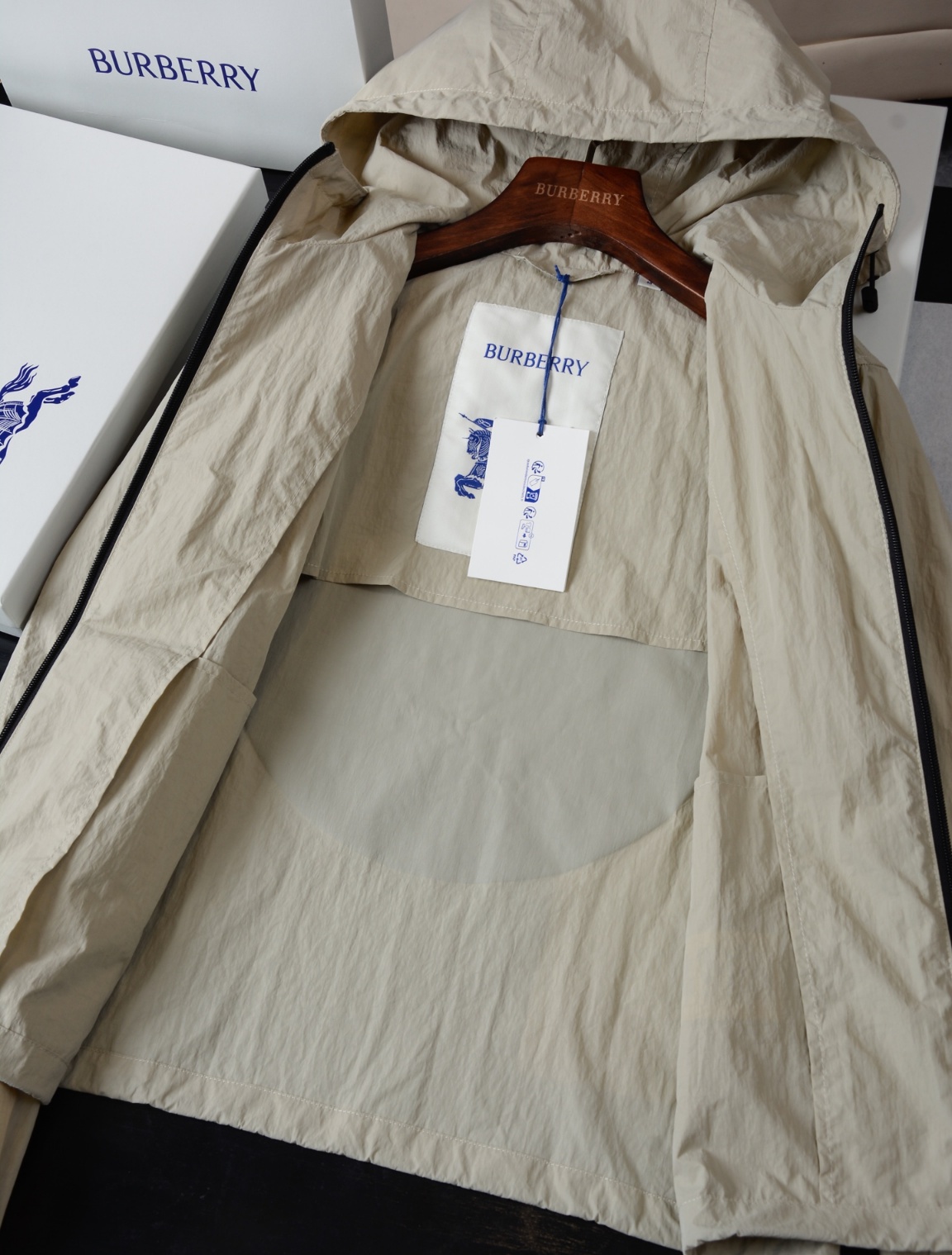 버버리 승마기사 배지 나일론 코트 나일론 소재의 눈보라 코트, 스포티 캐주얼, 프리미엄 아웃도어 투웨이 지퍼 여밈, 스트링 후드 & 옷자락 사이드 지퍼 포켓, 스판 소매, 안감 없음 앞가슴과 뒷면에 승마 기사 로고(EKD) 프린트 외부: 100% 폴리아미드, 내부: 100% 폴리아미드 일반 외투와는 비교가 안 될 정도로 가볍고 편안하며 그것의 주름성, 내마모성은 더욱 보기 드뭄 일정한 방수 성능을 가지고 있으며 루즈한 핏은 외출 시 운동하기에 적합함 방수, 자외선 차단, 바람 차단, 가벼움, 극단적인 품질, 화려한 디테일
