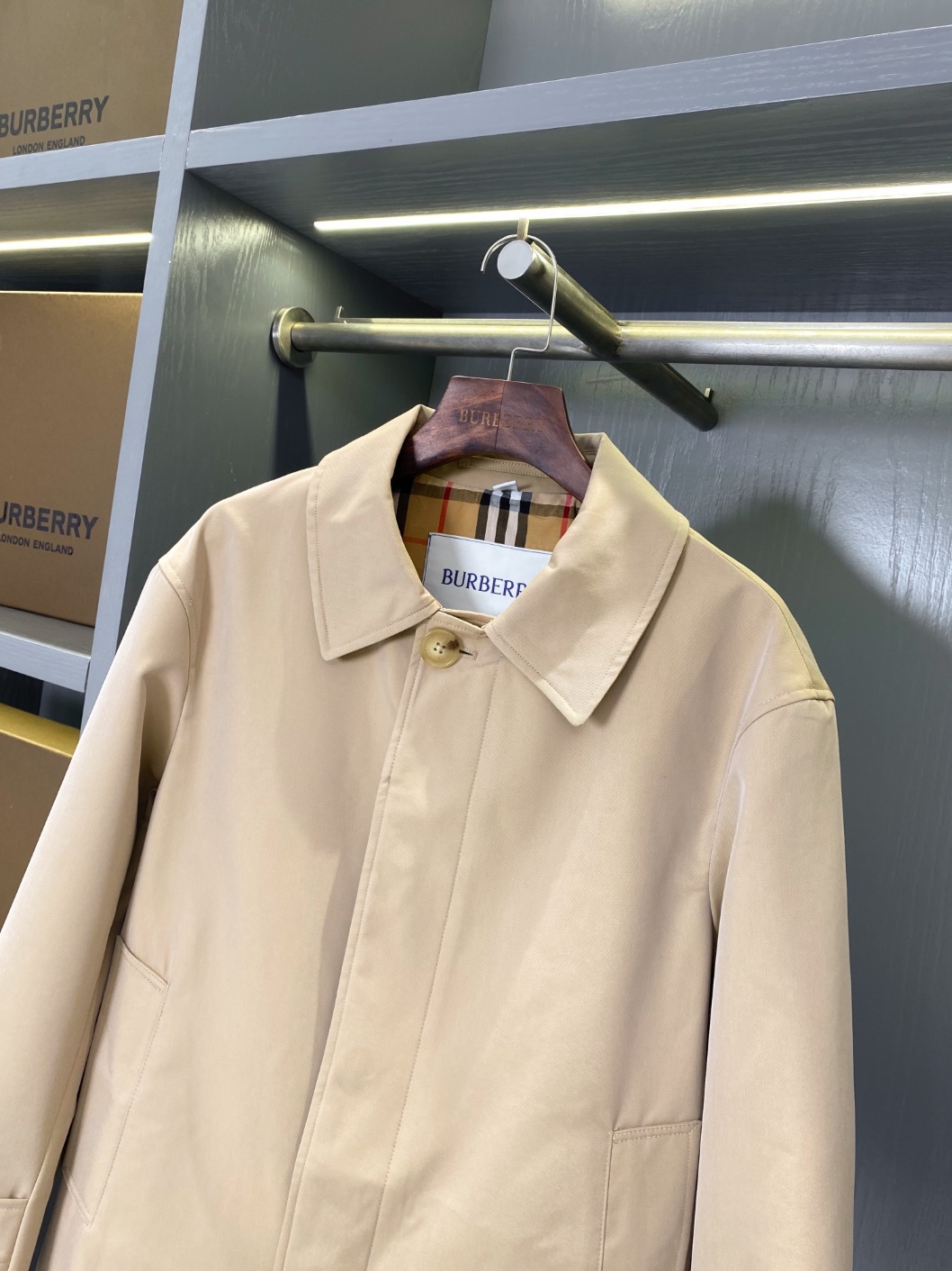 버버리 쇼트한 까바띠엔 트렌치코트 짧은 경량 코트는 방호용 면 소재의 가바딘 원단으로 제작 안쪽은 버버리 체크 코튼 소재로 1920년대부터 안감에 널리 사용 버클 루프 소매와 함께 일반적인 핏을 보여줌 싱글 오픈 – 데끼 사이드 포켓 – 버클 커프스 버버리 체크 안감과 네크라인 밑단 - 퓨어 내추럴 카우버클 100% 순면 까르띠엔 원단 우리 집의 트렌치코트의 품질은 의심할 필요가 없음 겉감 안팎으로 방수되어 촉감이 부드럽고 든든함 리얼 천연 소뿔 버클로 버튼마다 독특한 무늬가 있음 파운드리 세선 공예는 매장에 견줄 만함