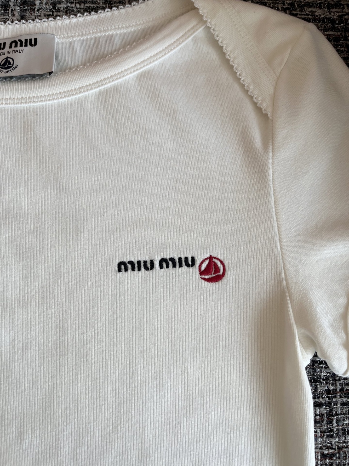 MiuMiu25 이른 봄 작은 요트 반팔티 ZP4550 구매 분해 제작 페루 특수원단 주문 제작, 염색, 실제 100% 순면사 직물로 맞춤 출하 공정 확대 시 디테일을 보면 환원도가 98% 이상에 가까움 진짜 1:1 환원