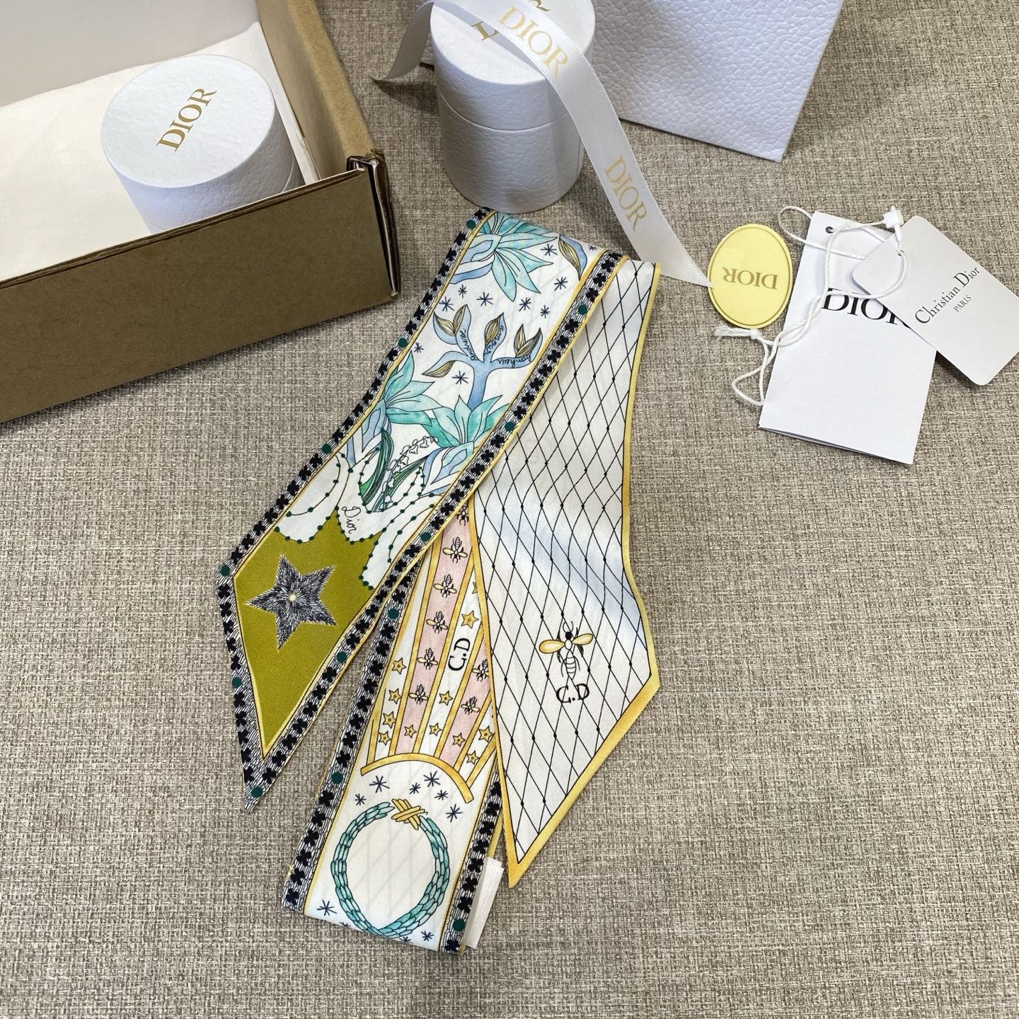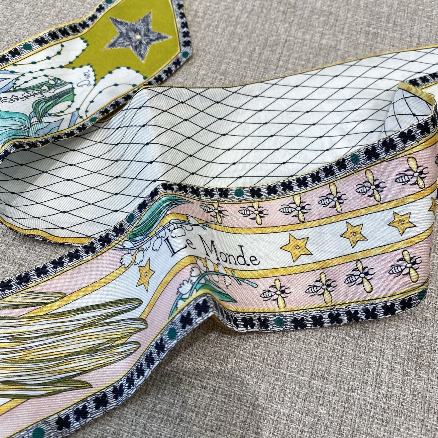디올 미츠하 타로 스카프 프리미엄 스타일링, 봄과 여름의 마음가짐 러브백을 더욱 돋보이게 하는 화사한 터치 소재 : 100% 실크 size : 6×105cm