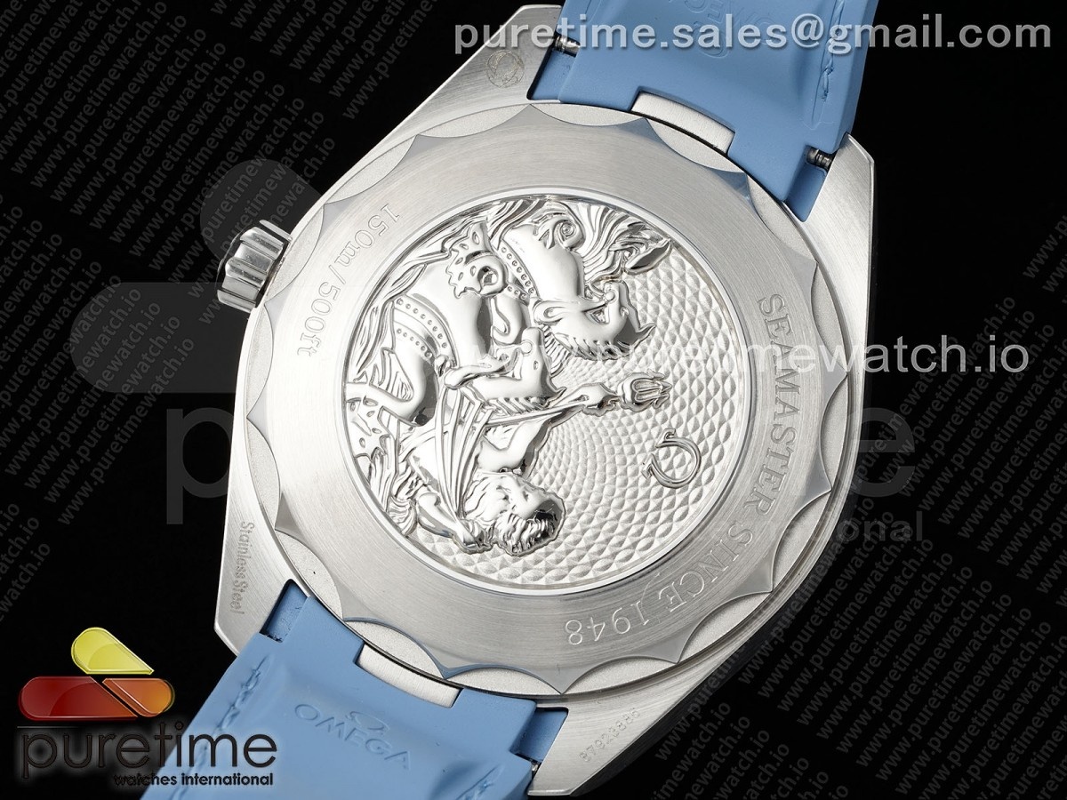 오메가 아쿠아 테라 41mm VSF 1:1 블루 러버 스트랩 A8900 슈퍼 클론의 여름 블루 다이얼 베스트 에디션 사이즈 41mm x 13.5mm 무브먼트 VSF 맞춤 제작 1:1 슈퍼 레플리카 오메가 8900 무브먼트 정품 8900 무브먼트와 거의 동일 기능들 시간, 분, 초 및 날짜 표시 케이스 1:1 복제 고체 316L 스테인리스 스틸 케이스 글라스 AR 코팅이 된 스크래치 방지 사파이어 크리스탈 다이얼 여름 블루 다이얼 스트랩 파란색 고무줄 버클 전개 걸쇠 방수 50미터
