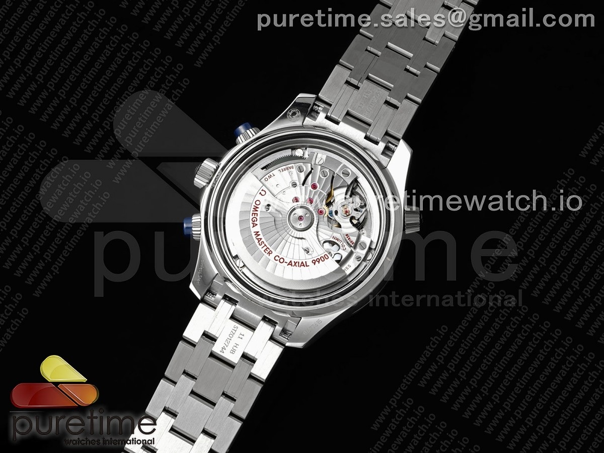 오메가 시마스터 300m 크로노 SS OMF 1:1 베스트 에디션 블루 다이얼, SS 브레이슬릿 A9900 사이즈 44mm x 17mm 무브먼트 오메가 9900 무브먼트로 장식된 아시안 7750 자동 크로노그래프 무브먼트 기능들 시간, 분, 서브초 및 날짜 표시; 크로노그래프 케이스 솔리드 316L 스테인리스 스틸 케이스 글라스 AR 코팅이 된 스크래치 방지 사파이어 크리스탈 다이얼 블루 다이얼 베젤 단방향 회전 블루 세라믹 베젤 스트랩 스테인리스 스틸 팔찌 버클 탕 버클 방수 50미터