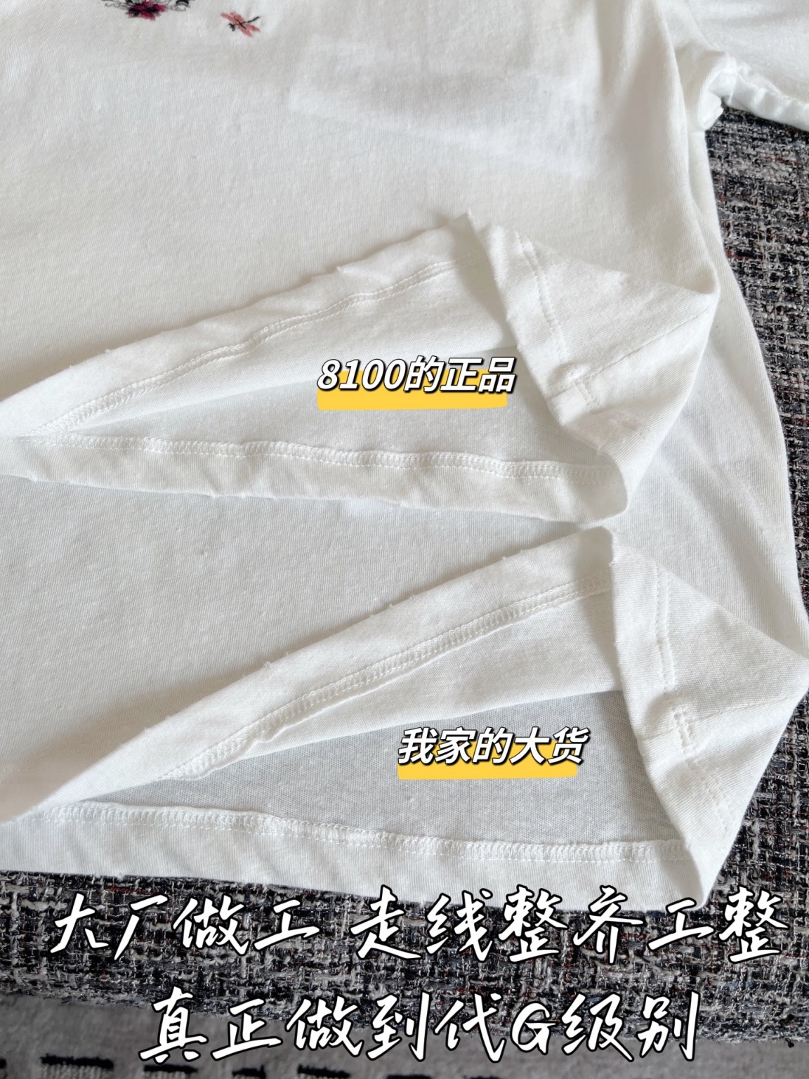 디올 25 이른 봄 반팔티셔츠 ZP 12500 구매 후 분해 제작 린넨 소재 주문 제작, 실제 100% 순면사로 직조하여 맞춤 출하 나비 벨링다 자수와 타원기 프린팅 공법 확대 디테일은 환원도가 98 이상 진짜 1:1 환원