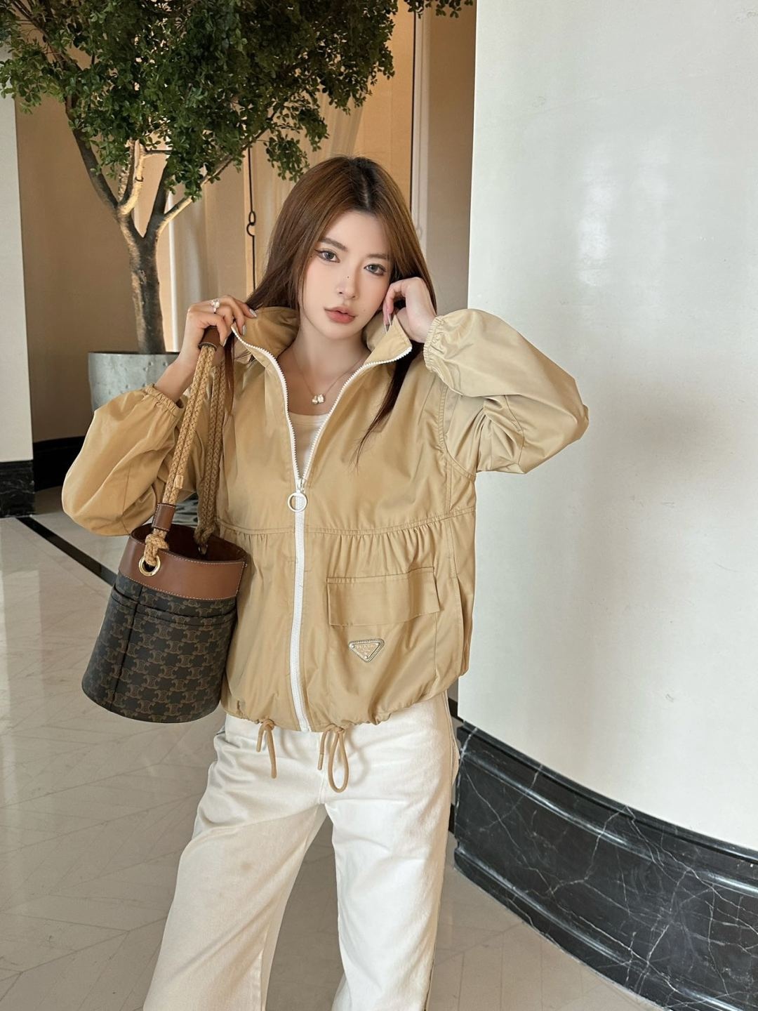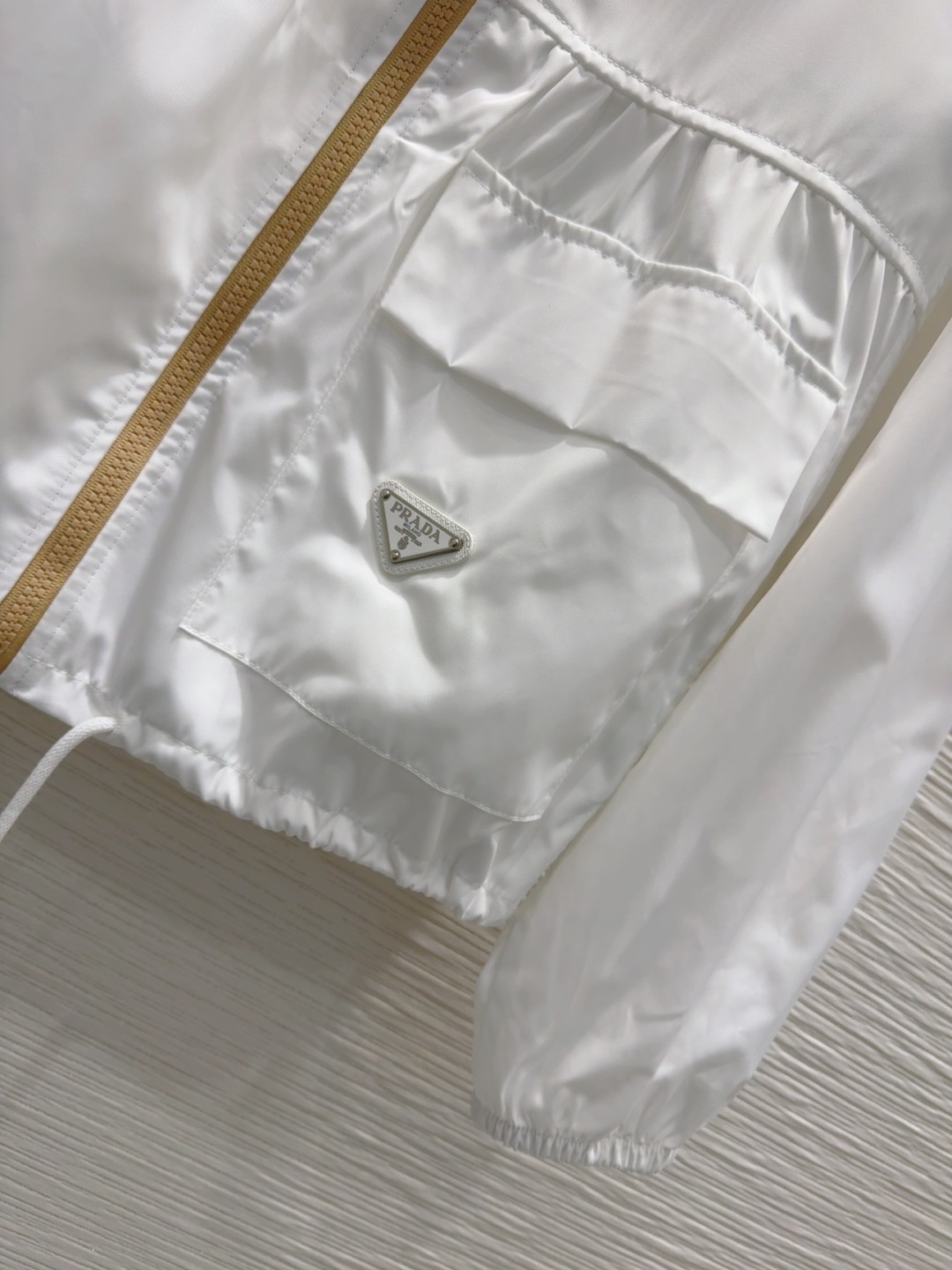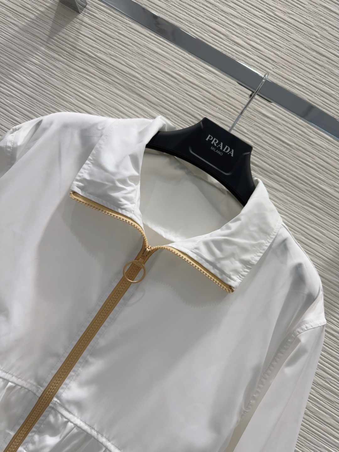 프라다 2025 신상품 트렌치코트와 래쉬가드의 충돌 디자인 특수 소재로 질감 있고 작은 디테일 하나하나에 신경을 쓴 고급스러운 입체 컷팅으로 상체를 세련되고 시크하게 가꿔줌 맞춤 메탈릭 버클, 실물이 대박