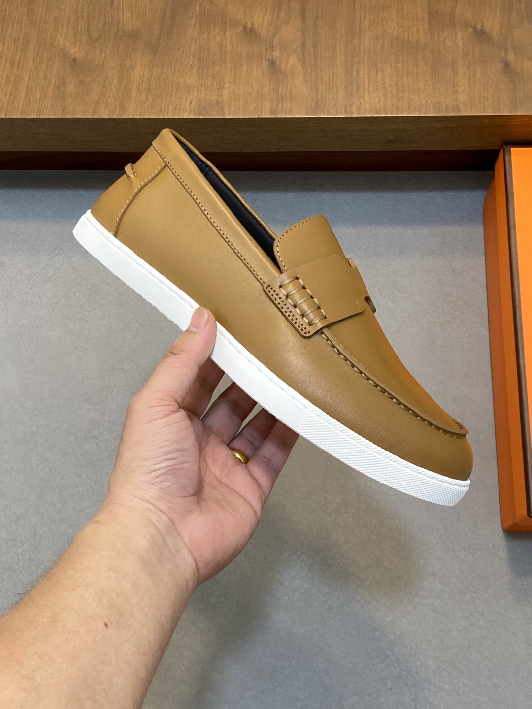 에르메스 2025 매장 신상 남성 캐주얼 로퍼 원단 수집 및 운송 첨단 오리지널 가죽과 헤드레스트 소가죽 접합 다양하고 편안한 소재, 경량 EVA 오리지널 바닥 라본 슬립 방식으로 매우 가볍고 활기찬 패션 스타일을 완성함
