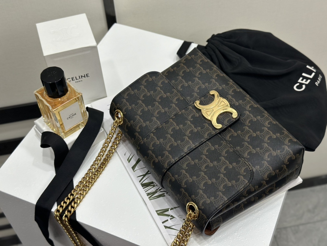 셀린느 빅투와르 미디움 숄더백 로고 프린팅 소가죽 트리밍 양가죽 라이닝 트리오페 스냅 여밈 바디가 가볍고 체인 디자인 체인 숄더 크로스 사계절 코디하기 좋은 심플한 스타일 힙하고 실용적이고 예뻐요 size: 25x15x8cm 모델번호: 115852